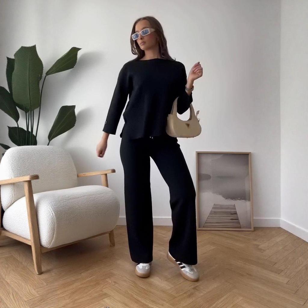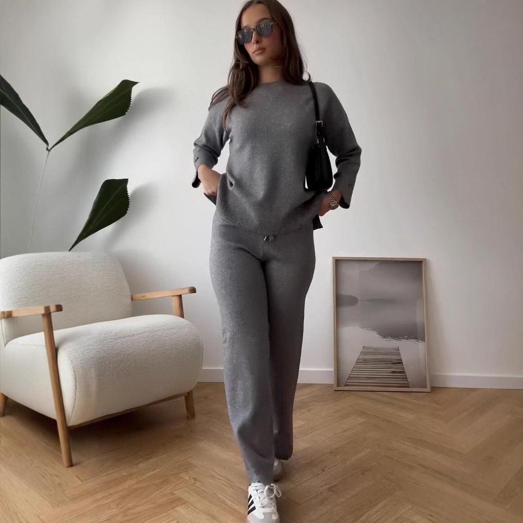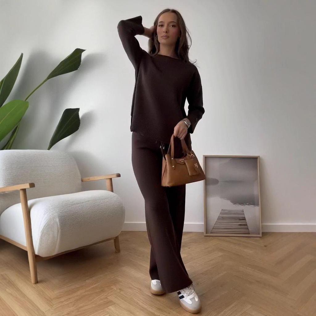 Женский вязаный костюм-двойка европейской и американской моды 2025 года - Осень/Зима, корейский свободный стиль