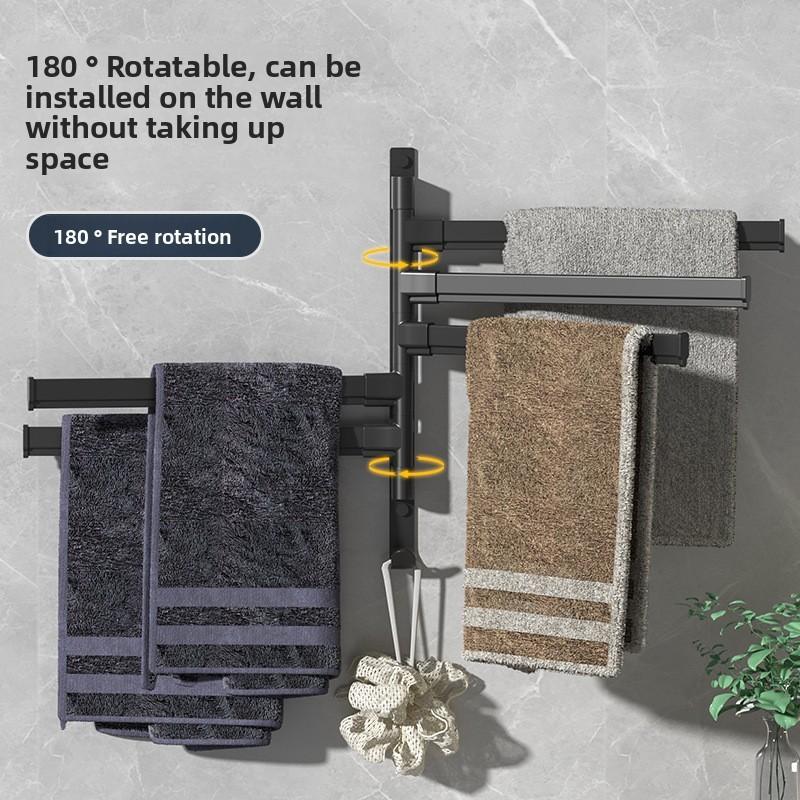 Поворотная стойка для полотенец настенная черная вешалка штанга нержавеющая ванная комната вращение 180