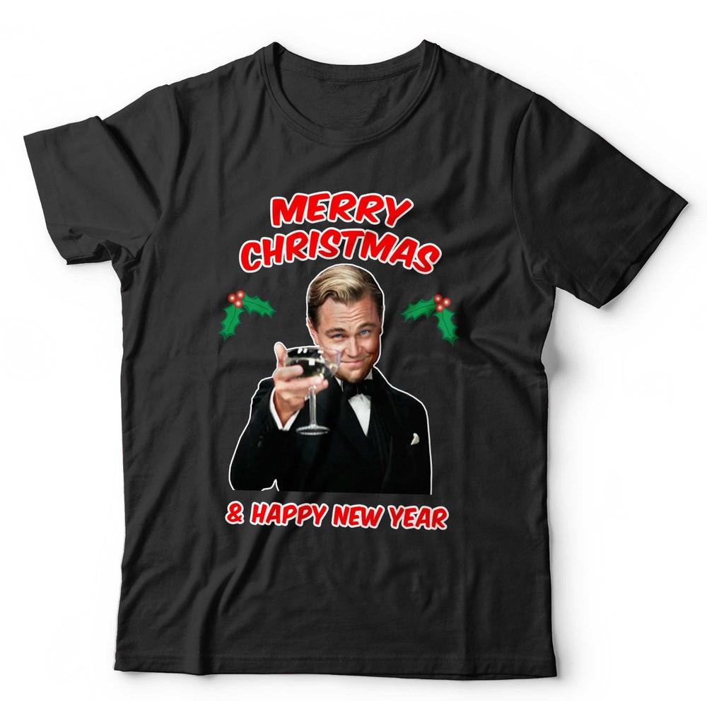 Рождественская футболка унисекс Леонардо Ди Каприо Новый год Рождество Смешной напиток
