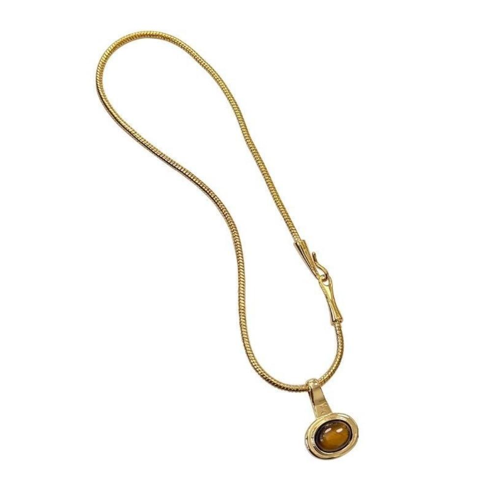 Подвеска из камня Тигровый глаз, ожерелье из титановой стали, женское ожерелье, цепочка для свитера, ювелирные аксессуары
