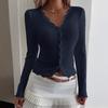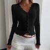 2025 Осень Зима Новинка V-образный вырез Кружевная вязка Кардиган Футболка С длинным рукавом Женский топ — купить товар онлайн с бесплатной доставкой по всему миру!
