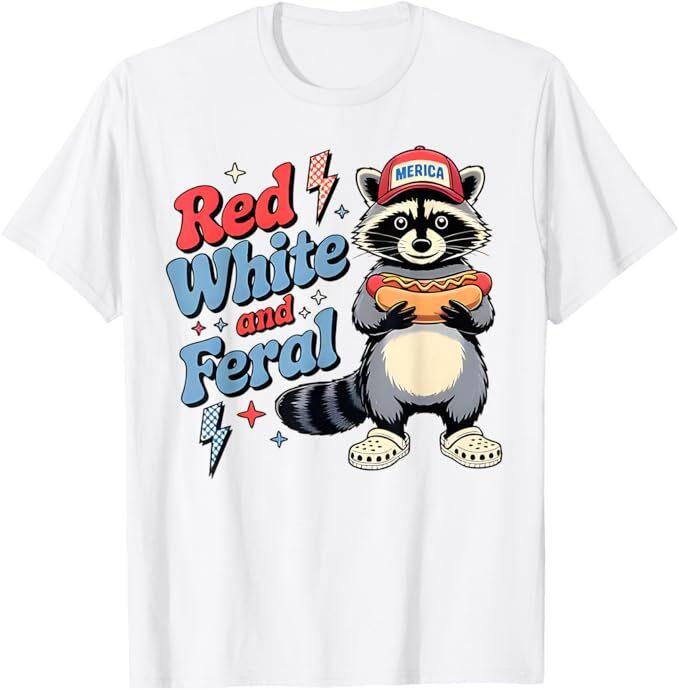 Red White And Feral Funny Raccoon 4th Of July Boys Girls T-Shirt — купить товар онлайн с бесплатной доставкой по всему миру!