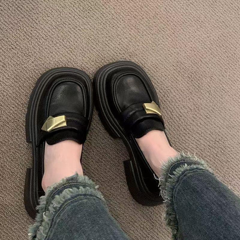 Платформа Британский стиль маленькие кожаные туфли женские черные лоферы туфли-однопедальки Мэри Джейн женская обувь 2025 весна новинка