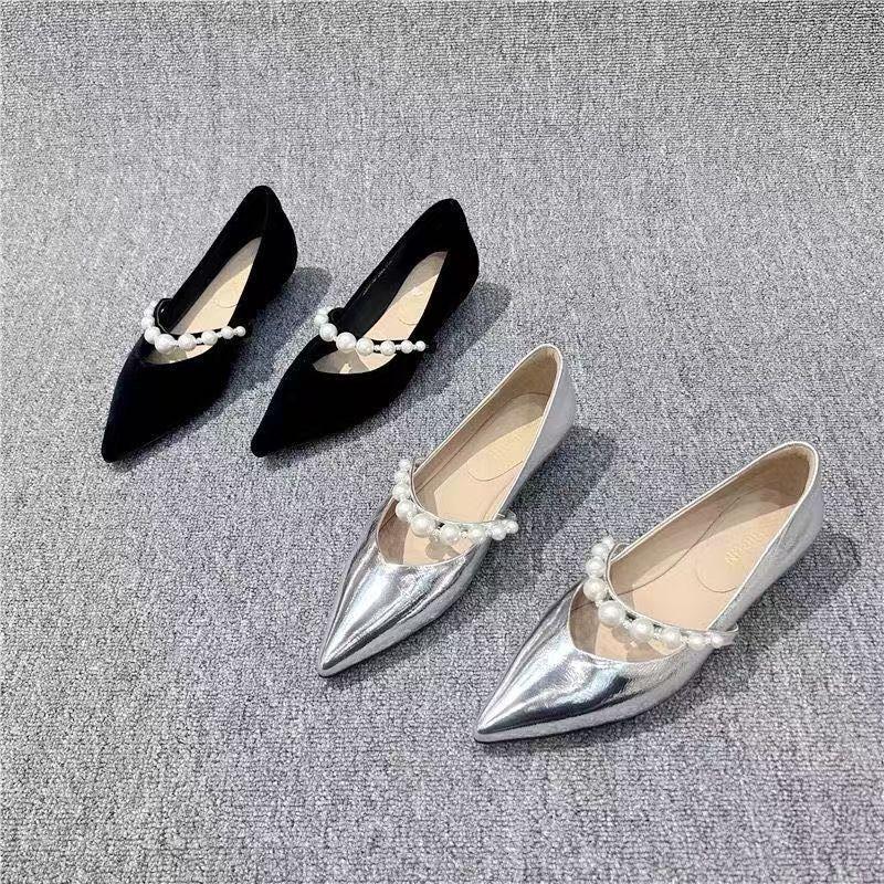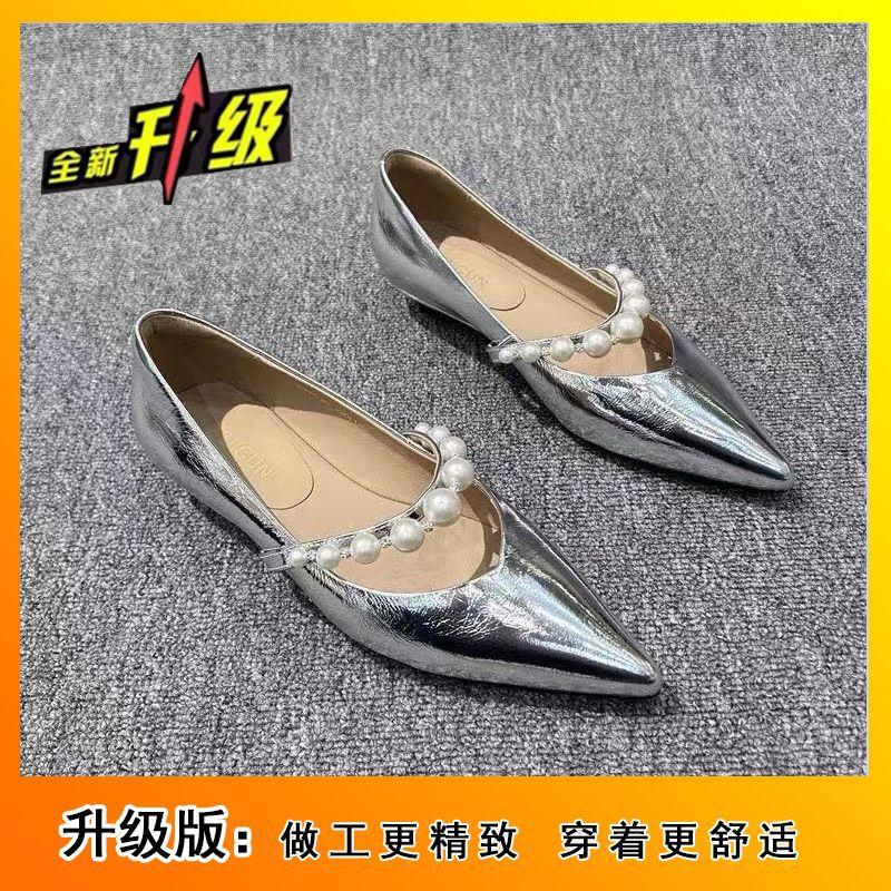 Туфли Мэри Джейн из французского серебра, женские туфли с острым носком на плоской подошве, женские туфли с мягкой подошвой, удобные, легкие, одинарные туфли для женщин 2025 года, новинка весны и осени
