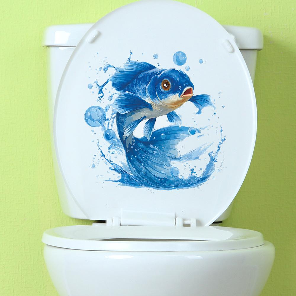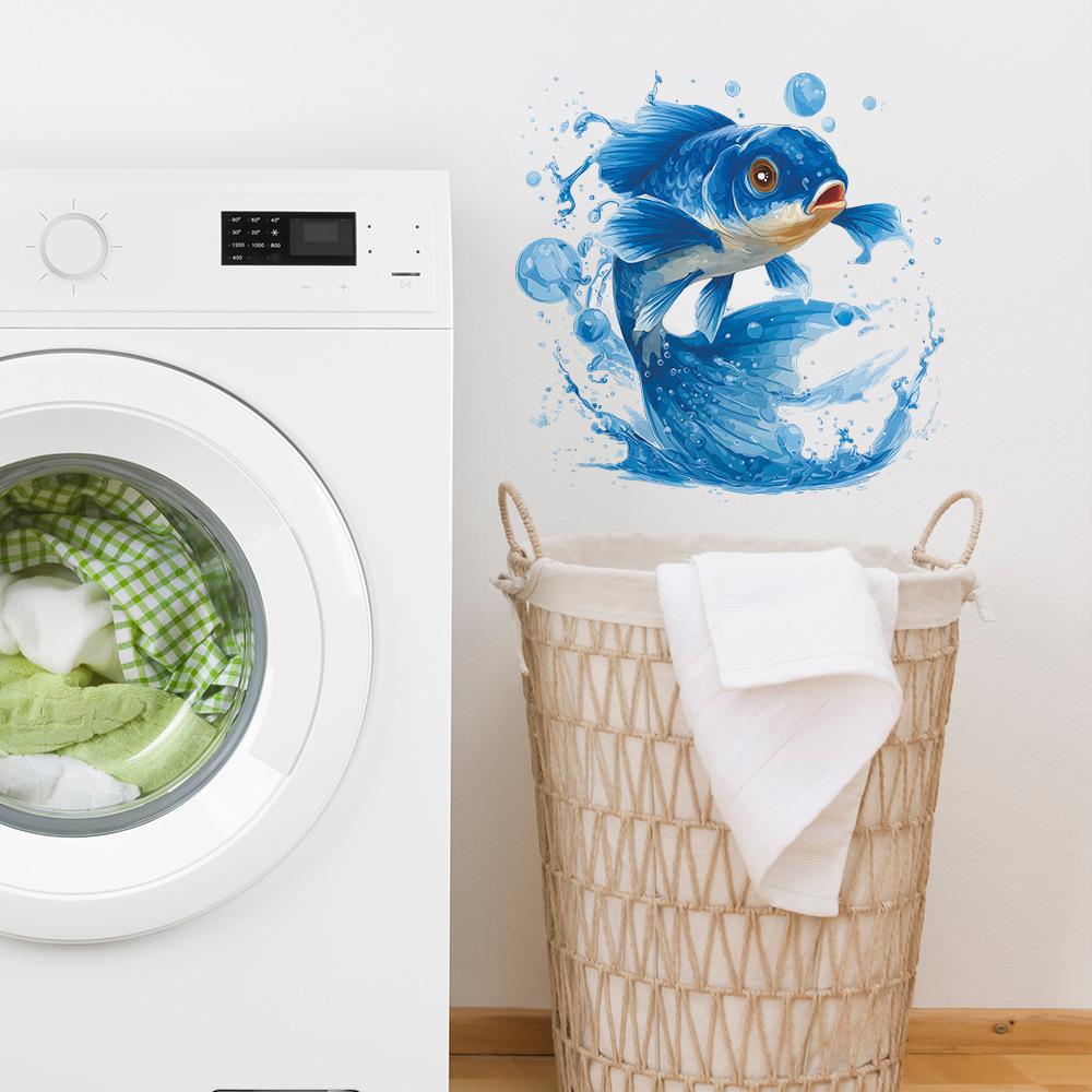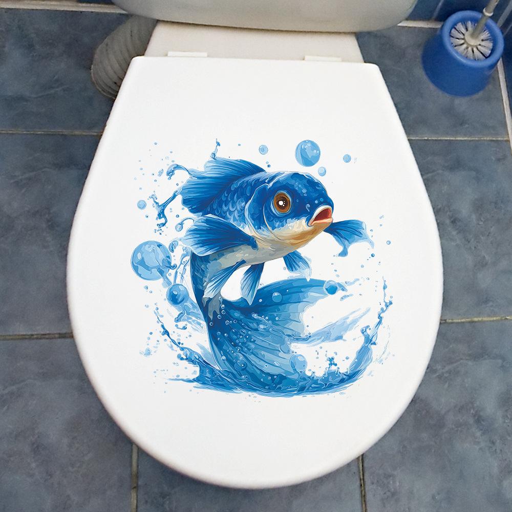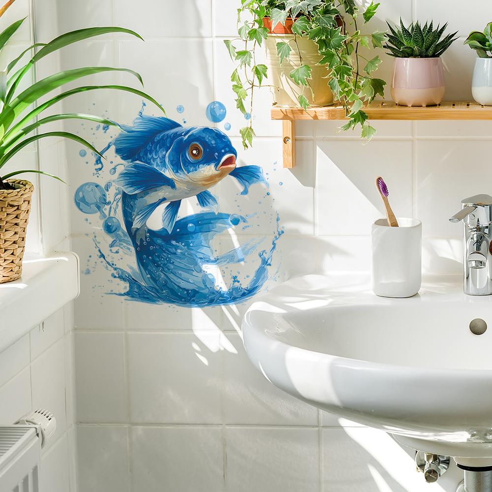 Креативные и яркие наклейки для украшения фона ванной комнаты с синими карпами