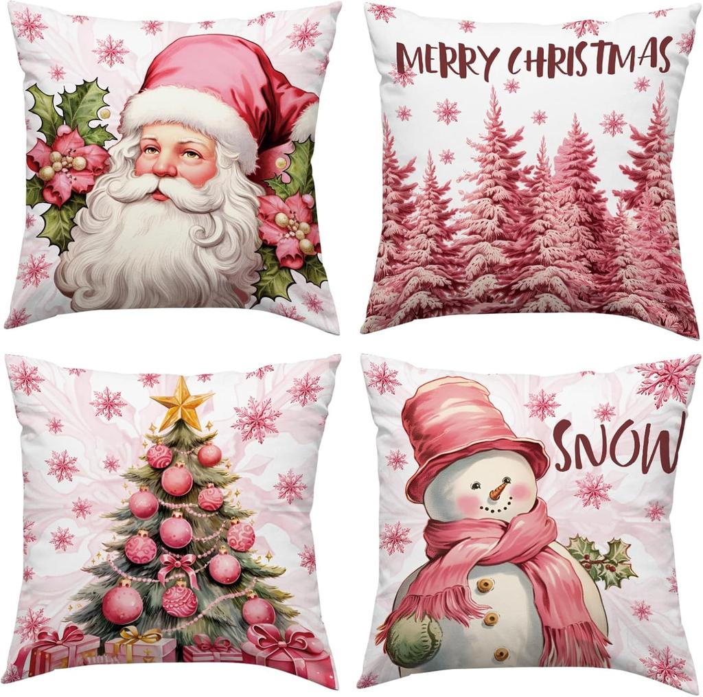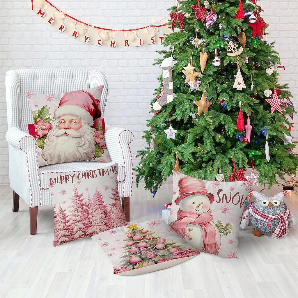 Мультяшные Рождественские Наволочки Льняные Диванные Квадратные Наволочки с Принтом Снежинок Поясничная Подушка Наволочка Домашний Декор для Кровати