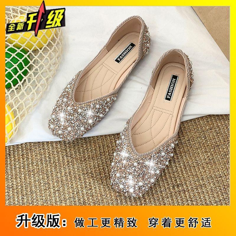 Туфли-лодочки на плоской подошве модные и универсальные, с мелким вырезом и одним ремешком, женские туфли со стразами на мягкой подошве, женские туфли Doudou 2025 sp