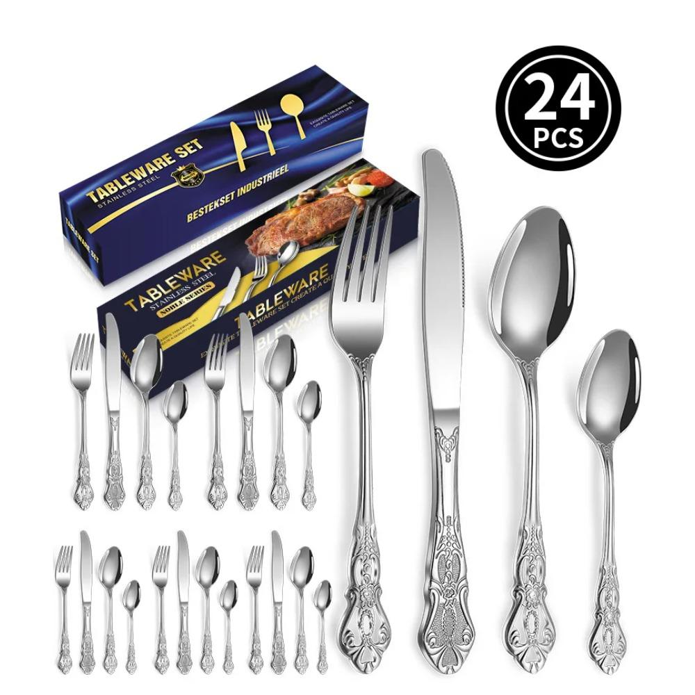 24 шт. KuBac Роскошный золотой набор столовых приборов из нержавеющей стали для стейка, вилок, золотой набор столовых приборов с роскошной деревянной подарочной коробкой, 16 шт., дропшиппинг