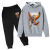 Winter Warm Running Athlete Sunbird Pattern Printed Casual Hoodie Comfortable Long Sleeve Children's Set