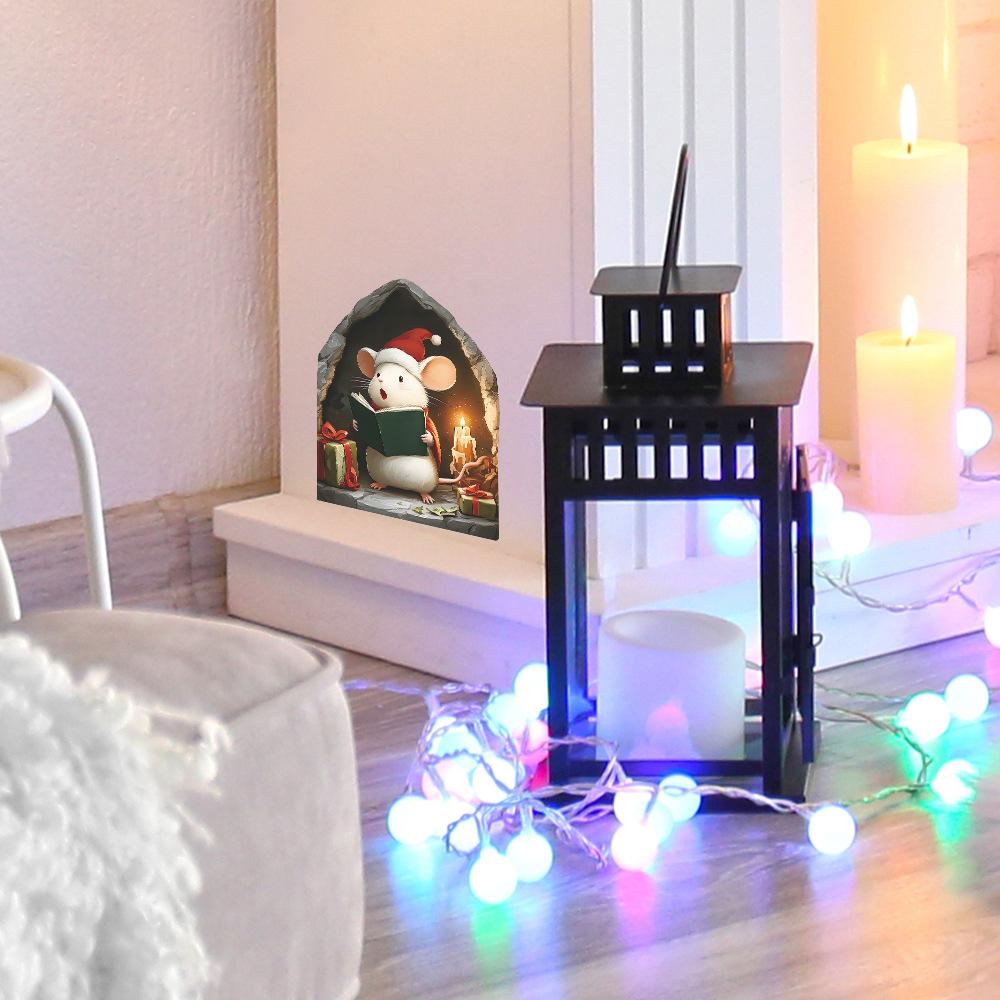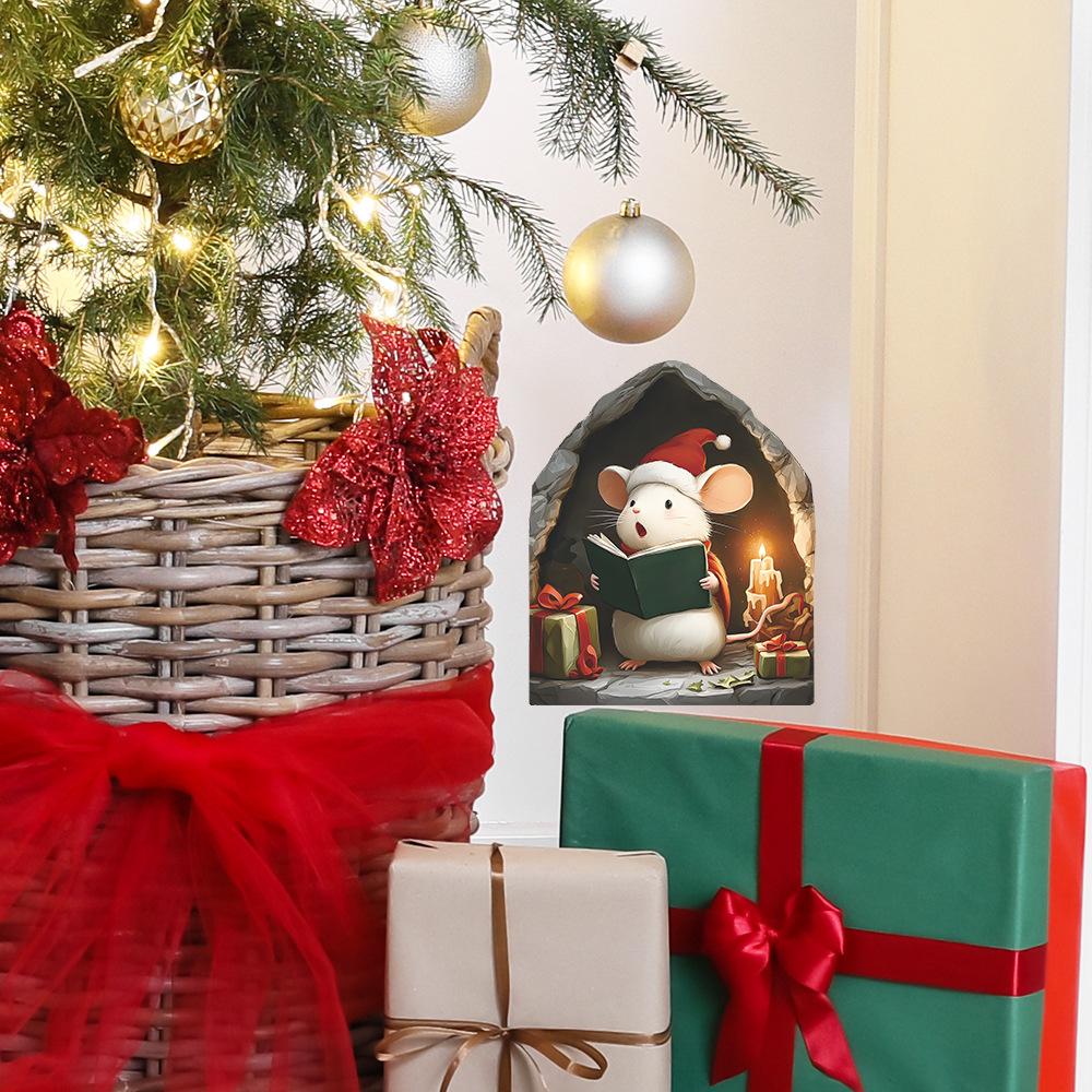 Мультяшная Рождественская Читающая Мышь, Мышиная Нора, Повседневная Спальня, Гостиная, Украшение Дома, Наклейки на Стену