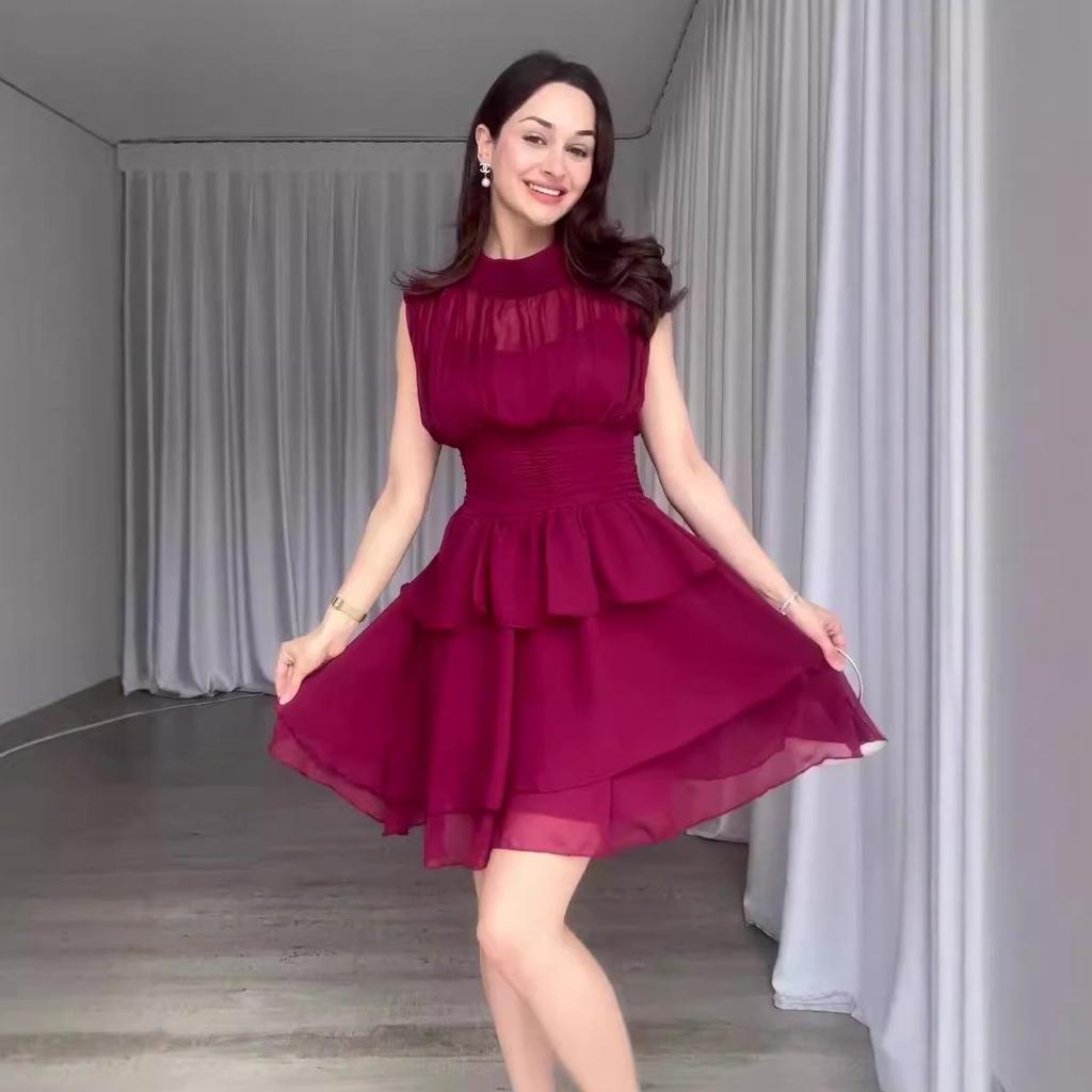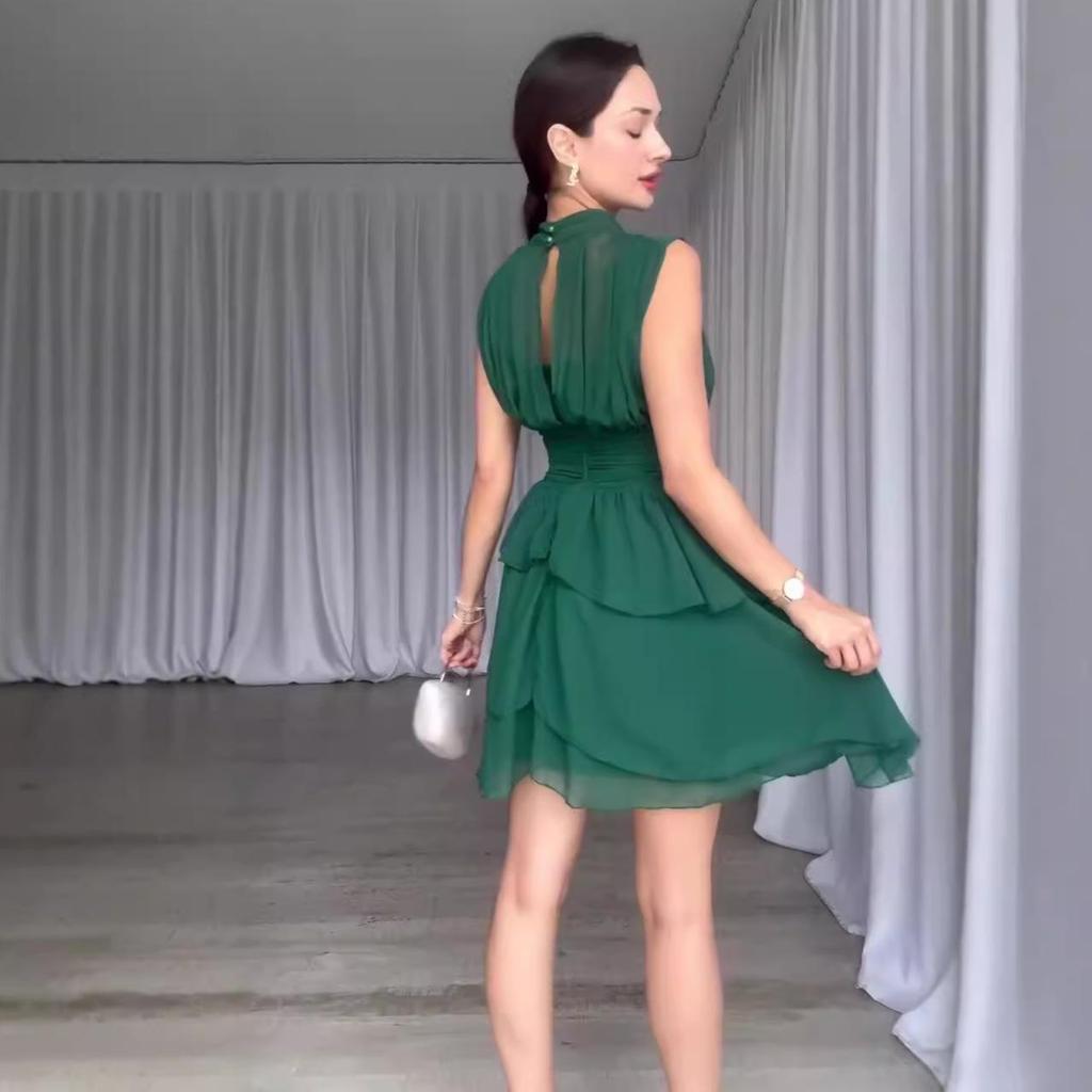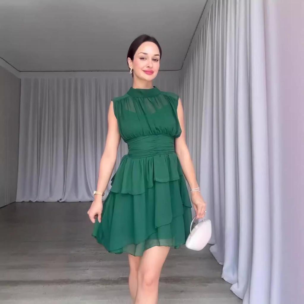 Летнее европейское и американское элегантное мини-платье с круглым вырезом и короткими рукавами, завязывающееся на талии