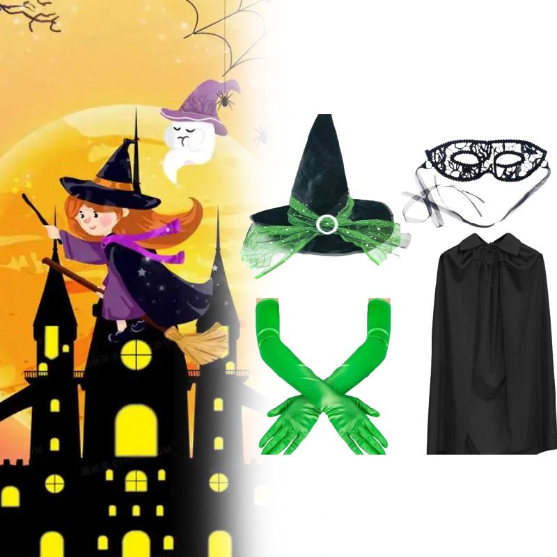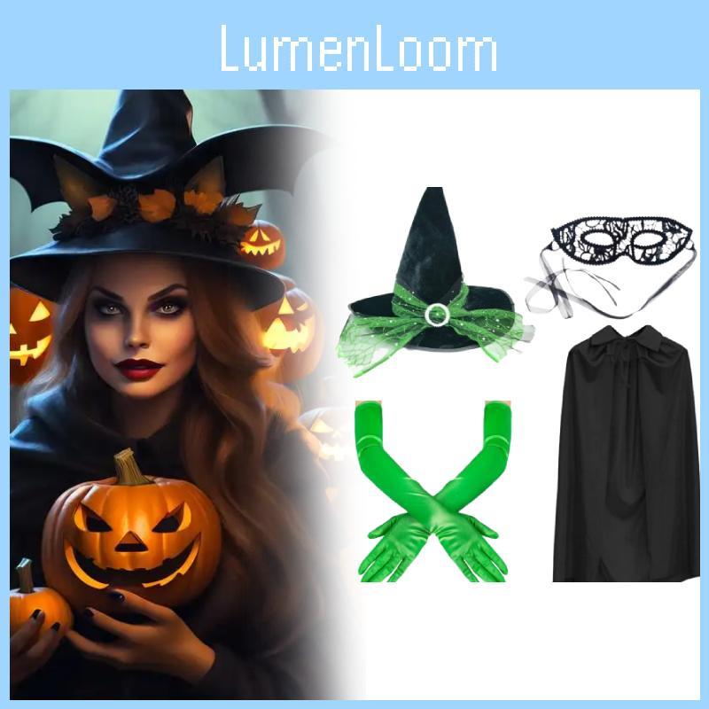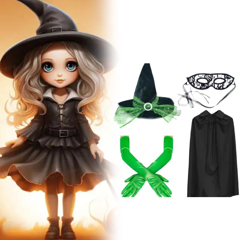 Этот набор аксессуаров для костюма на Хэллоуин включает шляпу ведьмы с оборками, кружевную маску, перчатки и плащ с капюшоном, изготовленные из прочной ткани. с регулируемой посадкой для комфорта. Идеально подходит для тематических вечеринок или праздничных собраний, дополняет любой костюмированный образ.. Легкий в уходе, протирать влажной тканью.