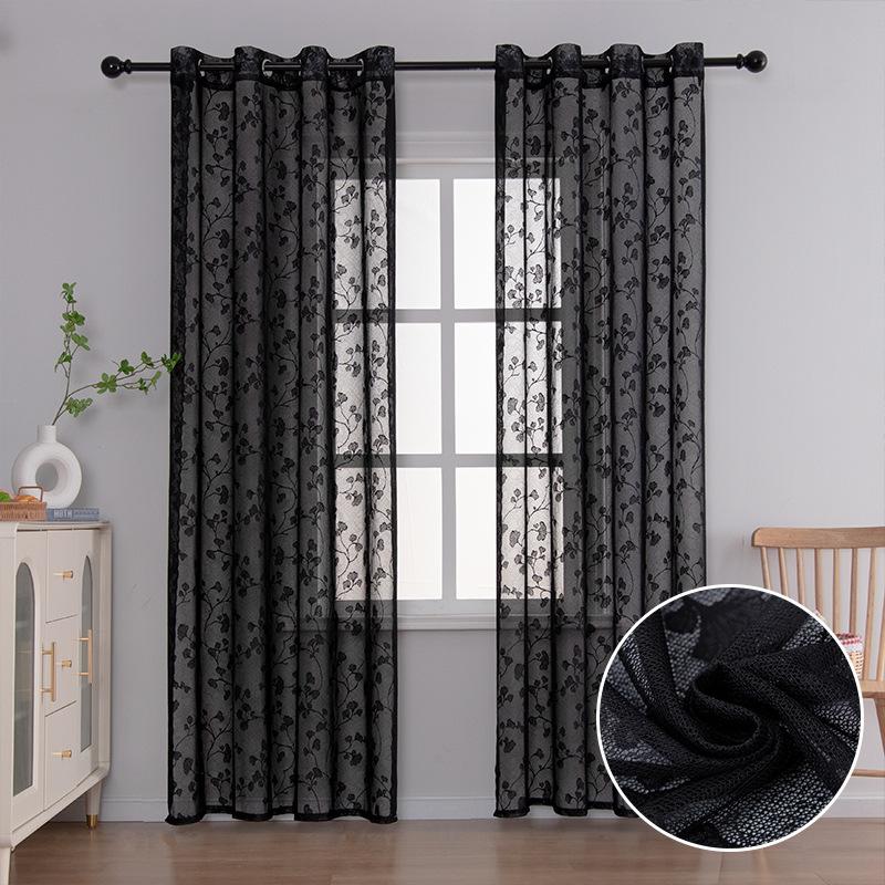 Тюлевые шторы в европейском стиле с цветочной вышивкой в виде тыквы - Легкая полиэстеровая ткань, Легкий монтаж, Дизайн с люверсами