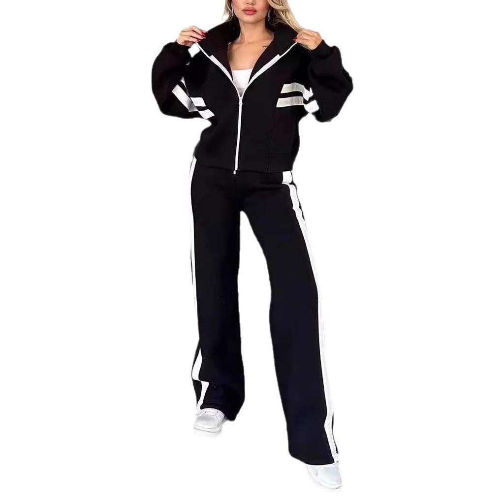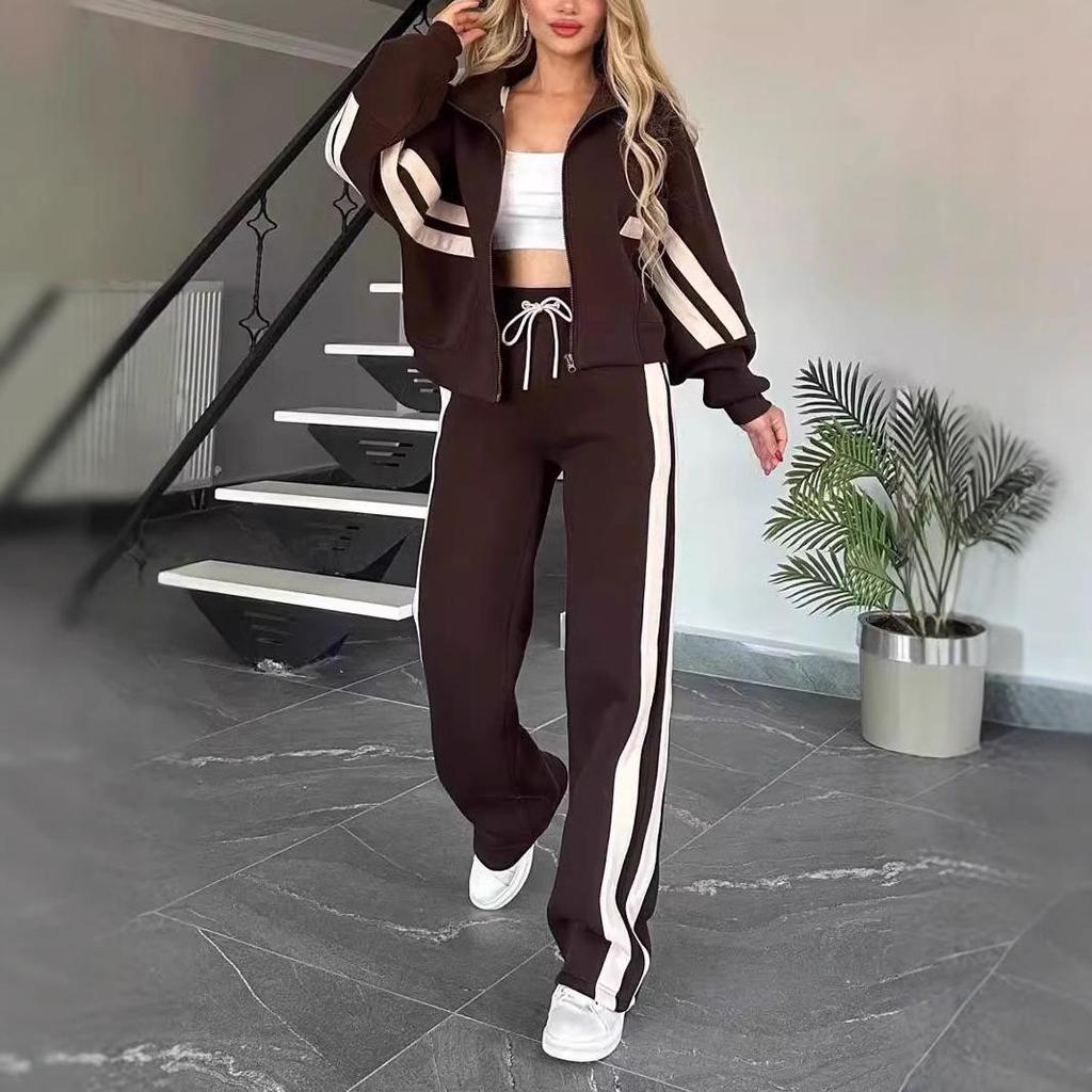 Представляем шикарное и удобное дополнение к вашему осеннему гардеробу 2025 года: Повседневный спортивный костюм-двойка для женщин: полосатая куртка на молнии и брюки в стиле Y2K. Этот комплект отличается смелым полосатым узором и искусно изготовлен из высококачественного полиэстера, обеспечивающего как долговечность, так и комфорт.. Разработанный в повседневном стиле, он идеально подходит для носки каждый день, будь то выполнение поручений, встречи с друзьями или просто отдых.. В комплект входят стильная куртка на молнии и подходящие брюки, создающие скоординированный образ, излучающий непринужденную крутость.. Примите тренд с этим привлекательным комплектом, который идеально подходит для модной женщины.