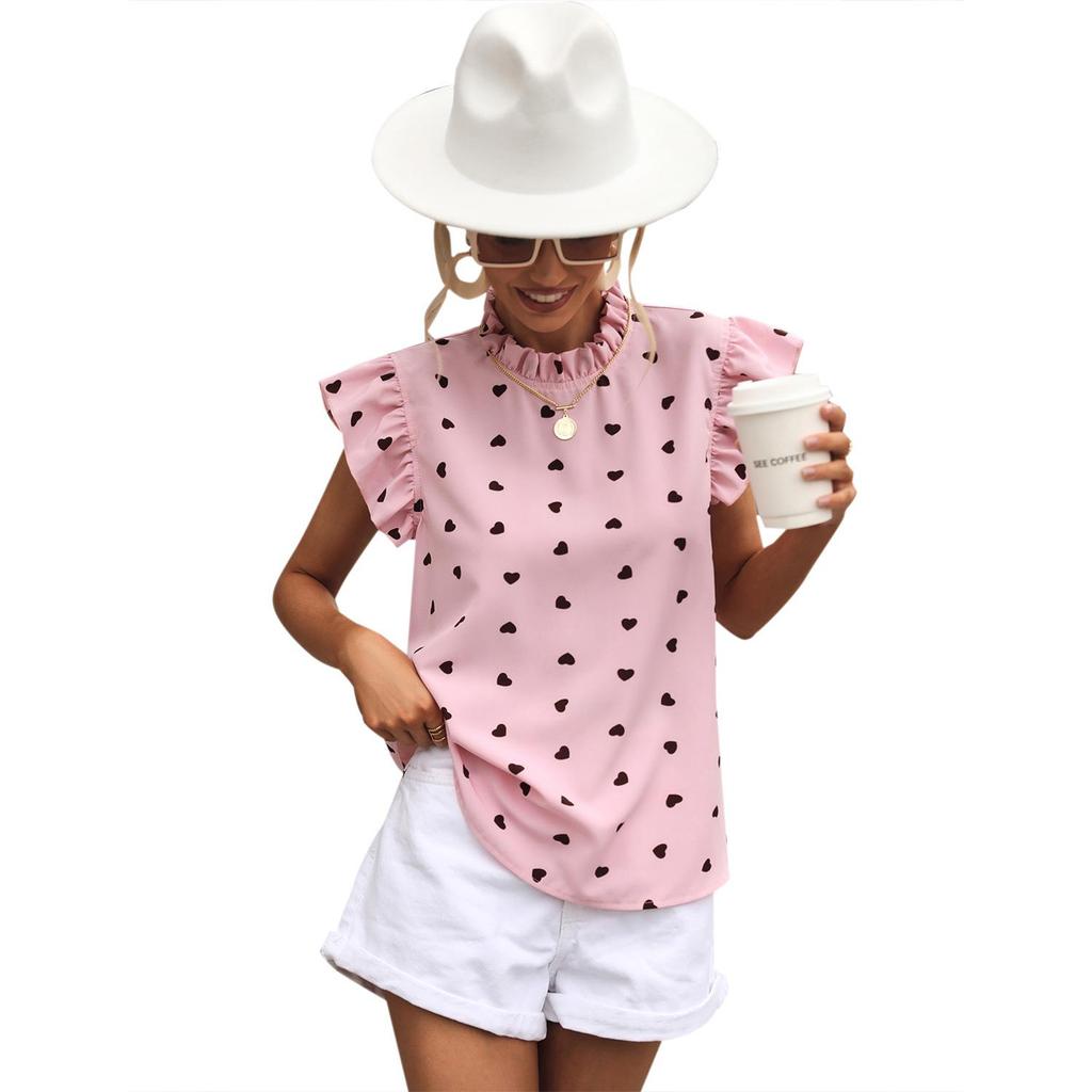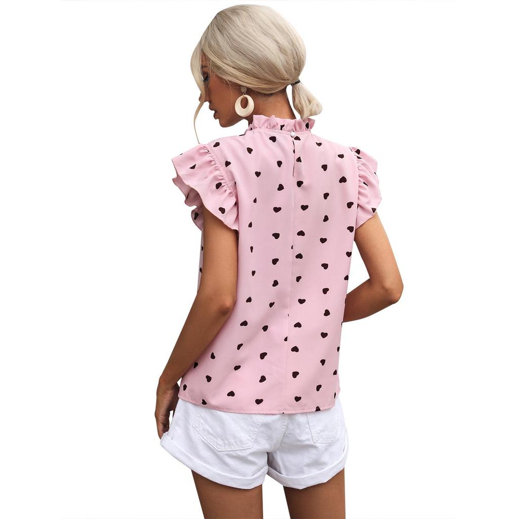 Женская европейская и американская рубашка с рюшами и круглым вырезом в горошек