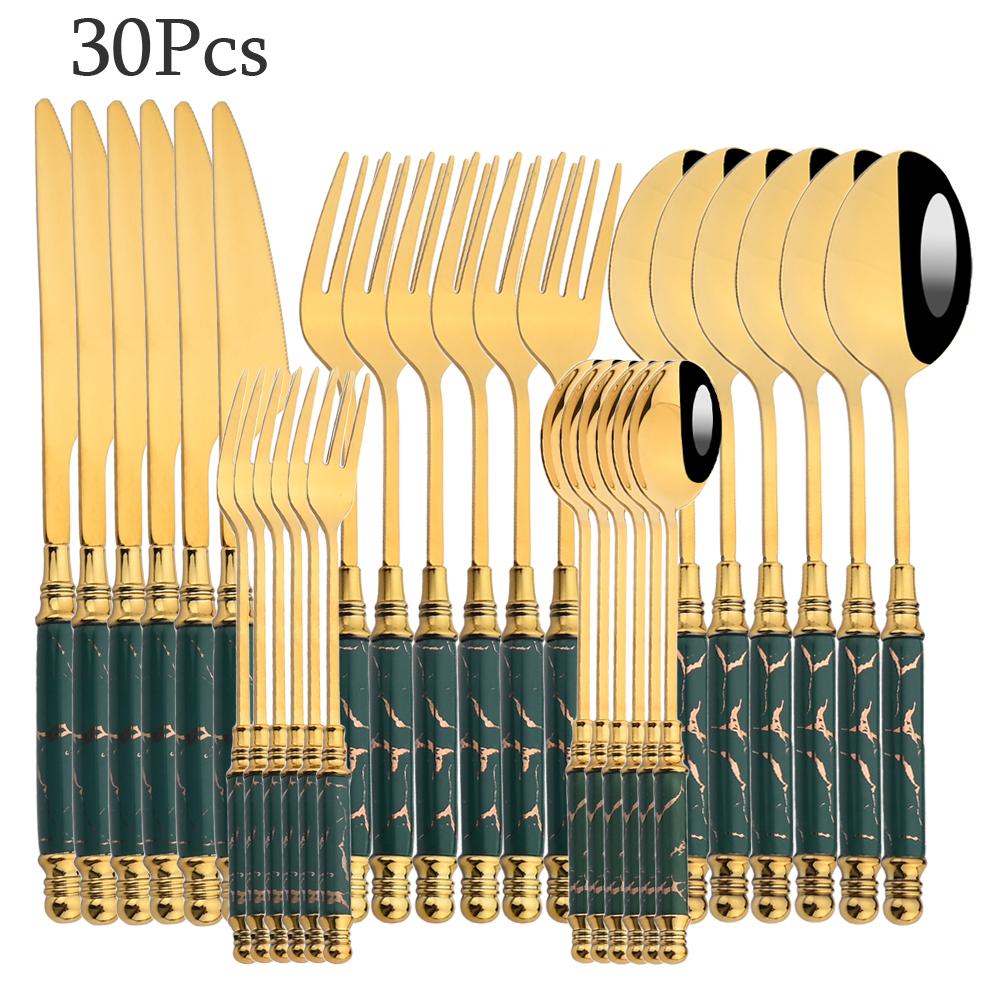 AJOYOUS 24/30 шт. столовая посуда из нержавеющей стали керамический нож вилка для торта чайная ложка столовая посуда набор столовых приборов