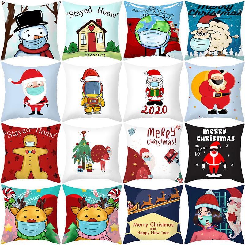 Christmas Pillow Case Cartoon Vent Mask Santa Claus Series Printed Sofa Cushion Pillow Case Home