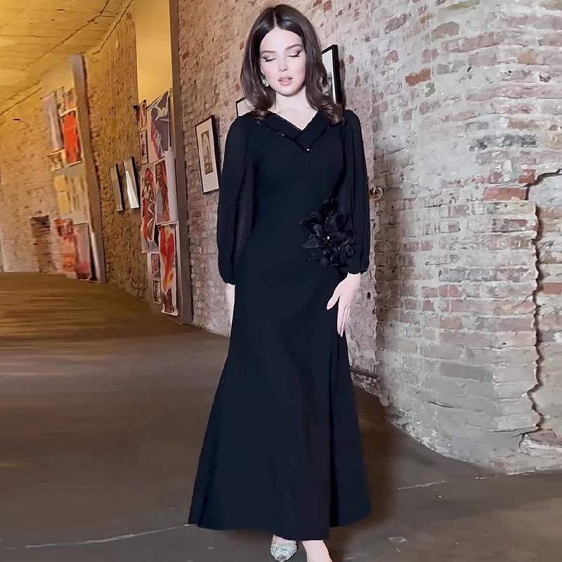 2024 Осень Легкое Зрелое Однотонное Длинное Платье с 3D Аппликацией — купить товар онлайн с бесплатной доставкой по всему миру!