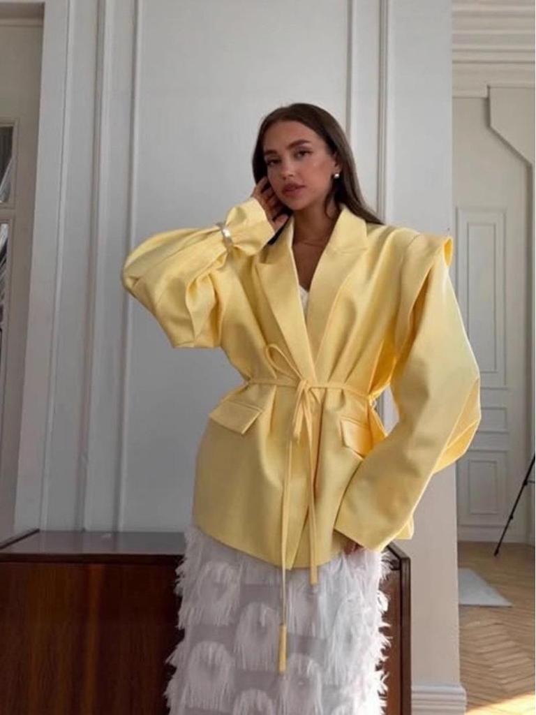 Женский блейзер 2025 года в корейском стиле с поясом и подплечниками для весны/осени — купить товар онлайн с бесплатной доставкой по всему миру!