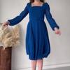 2024 Осень Европейский и Американский Ретро Однотонное Платье с Квадратным Вырезом Элегантное с Длинным Рукавом