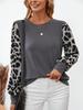 Женская футболка с длинным рукавом, круглым вырезом и леопардовым принтом, пэчворк, Осень/Зима 2024