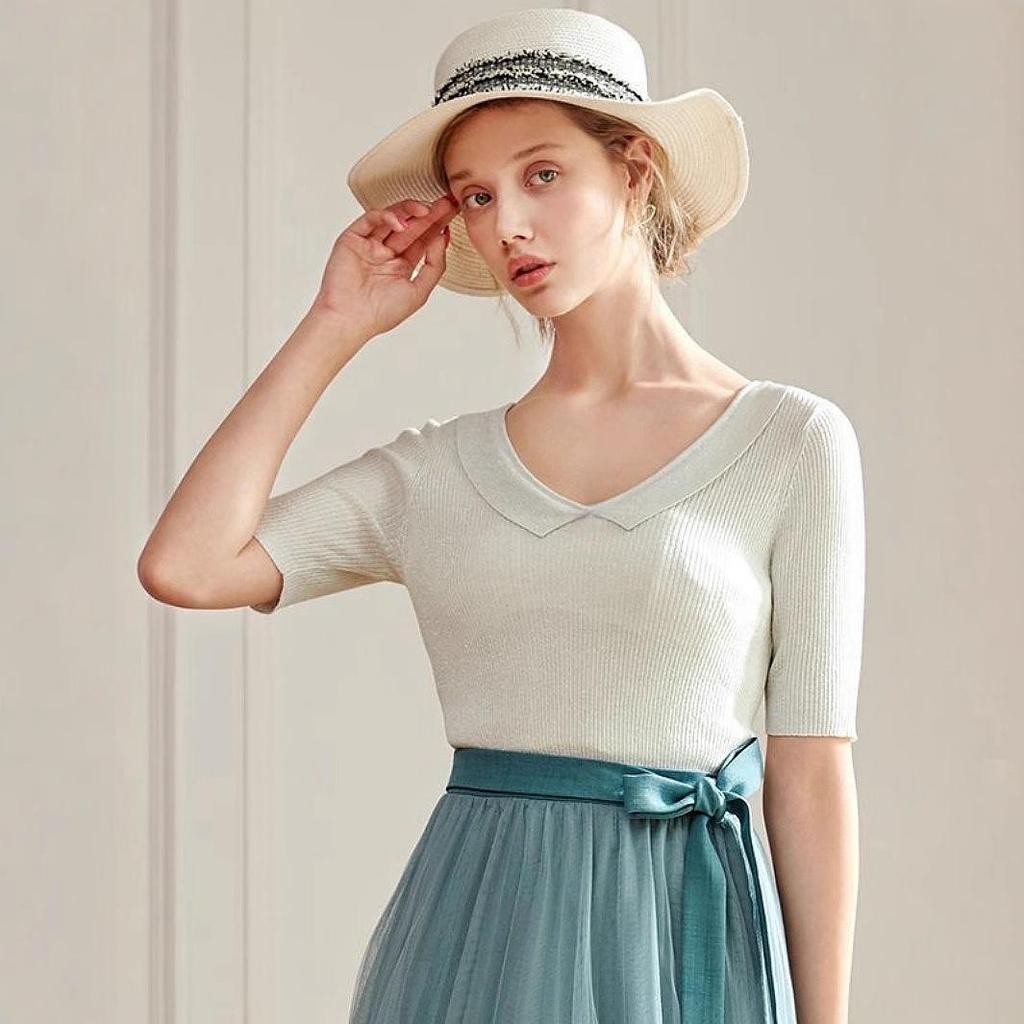 Женский летний облегающий вязаный топ-поло - Повседневный, нежный стиль, модная распродажа с коротким рукавом