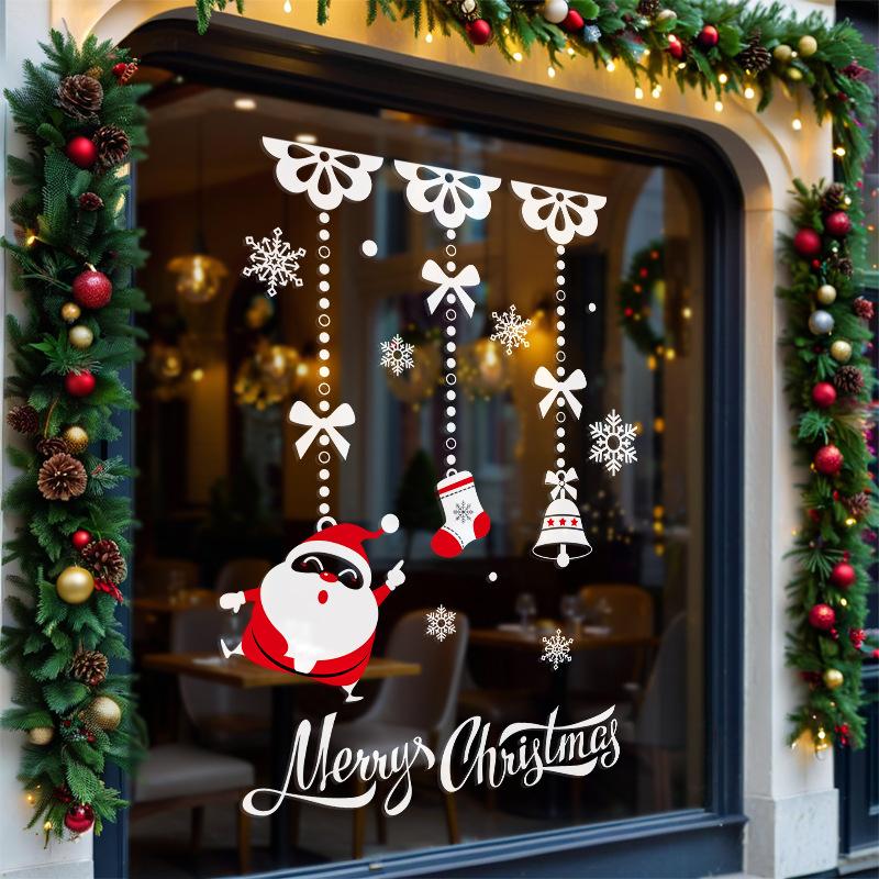 Декоративная оконная решетка в атмосфере Санта-Клауса, плитка для стеклянной двери, статические наклейки со снеговиком