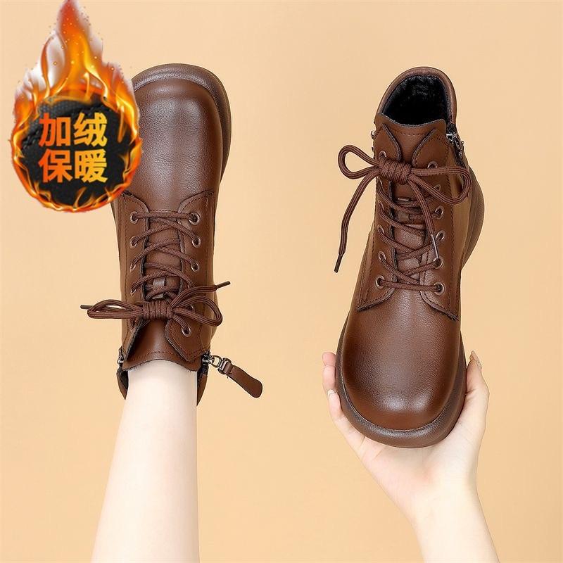Ретро теплые мягкие кожаные ботинки Мартин женские осенне-зимние новые модные на платформе с толстой подошвой универсальные короткие ботинки