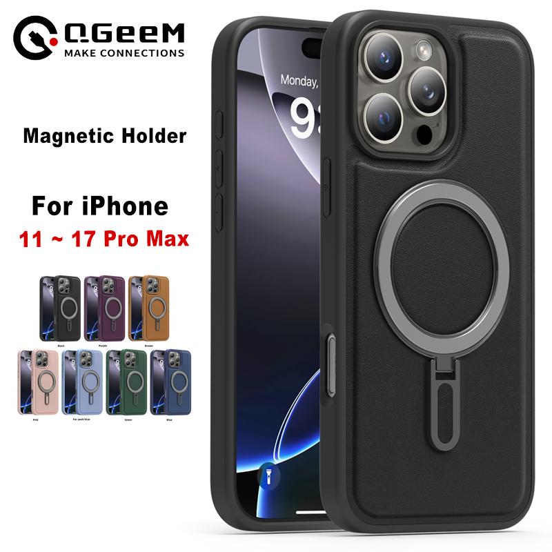 Magsafe Магнитный Металлический Автомобильный Держатель Кольцо Роскошный Матовый Кожаный Чехол для Телефона для iPhone 16 Pro Max 14 11 12 13 15 Pro Max Задняя Крышка