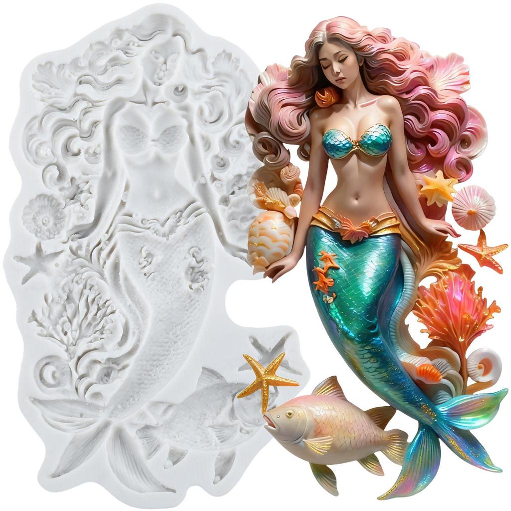 Силиконовая форма Русалка Рыба Морская звезда Формы для мастики Инструменты для украшения торта Топпер для кексов Конфеты Сахарная мастика Полимерная глина
