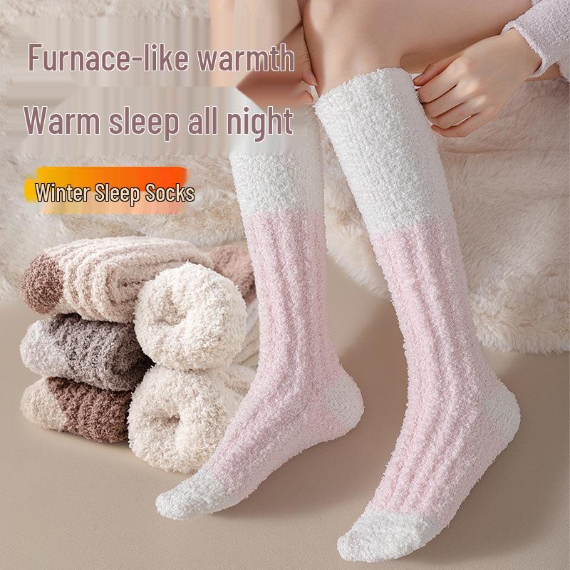 Женские плюшевые длинные носки из кораллового флиса: Толстые, теплые носки для сна на осень и зиму