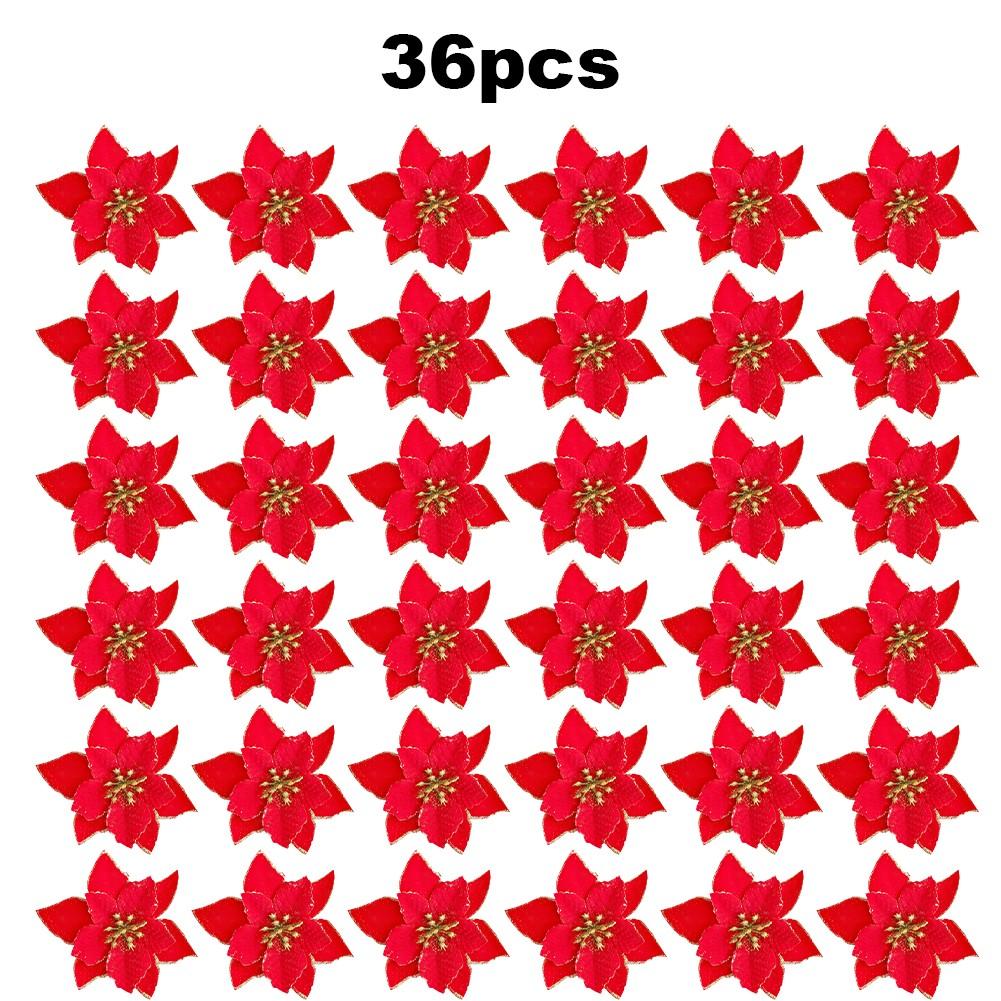 *Щедрый размер упаковки: Каждый набор включает 36 ярких красных пуансеттий, у вас будет достаточно, чтобы украсить вашу рождественскую елку, венки или другие праздничные композиции, создавая целостную праздничную атмосферу.