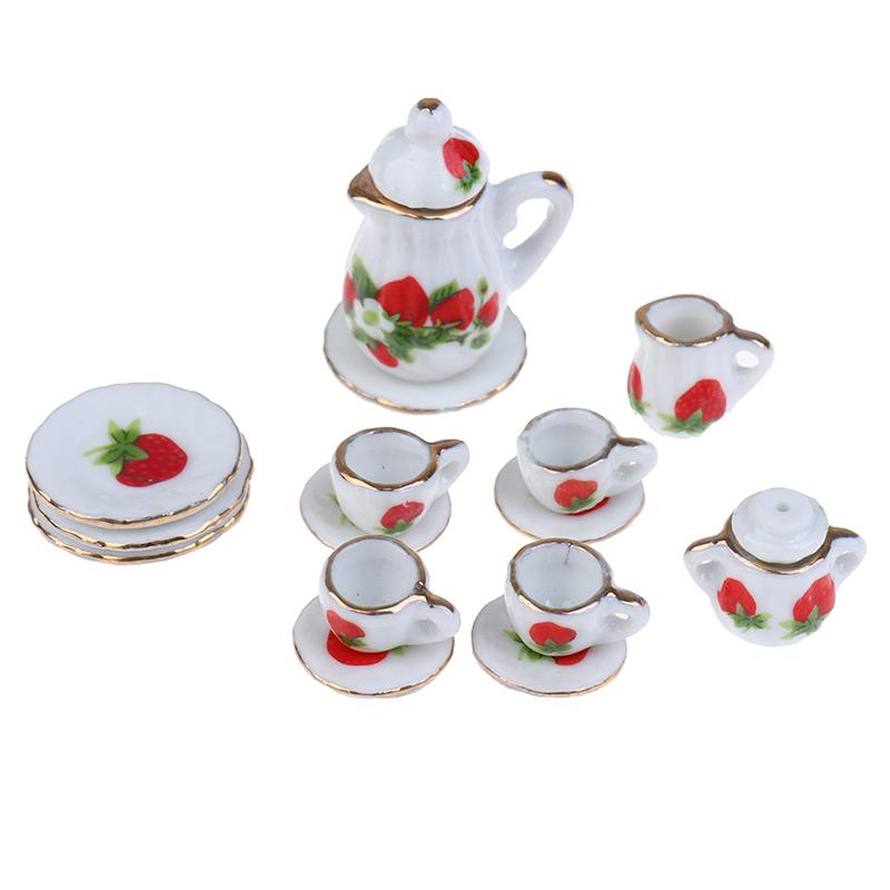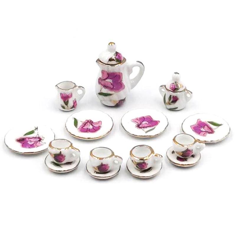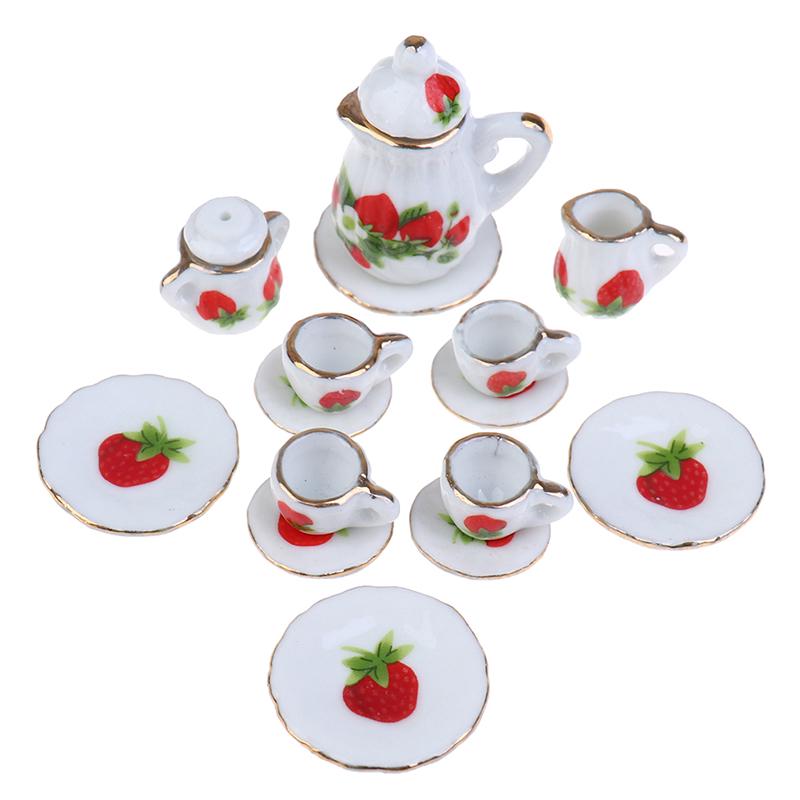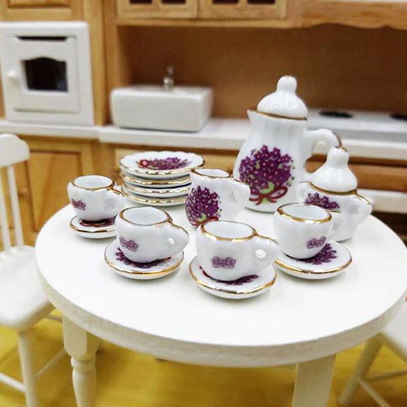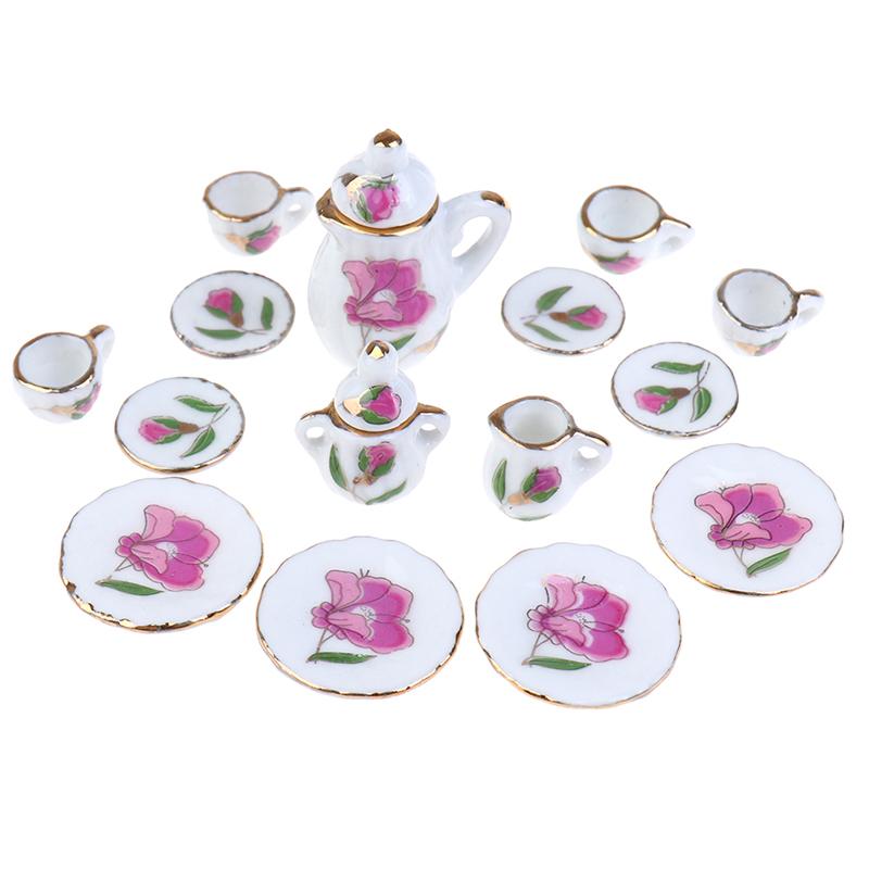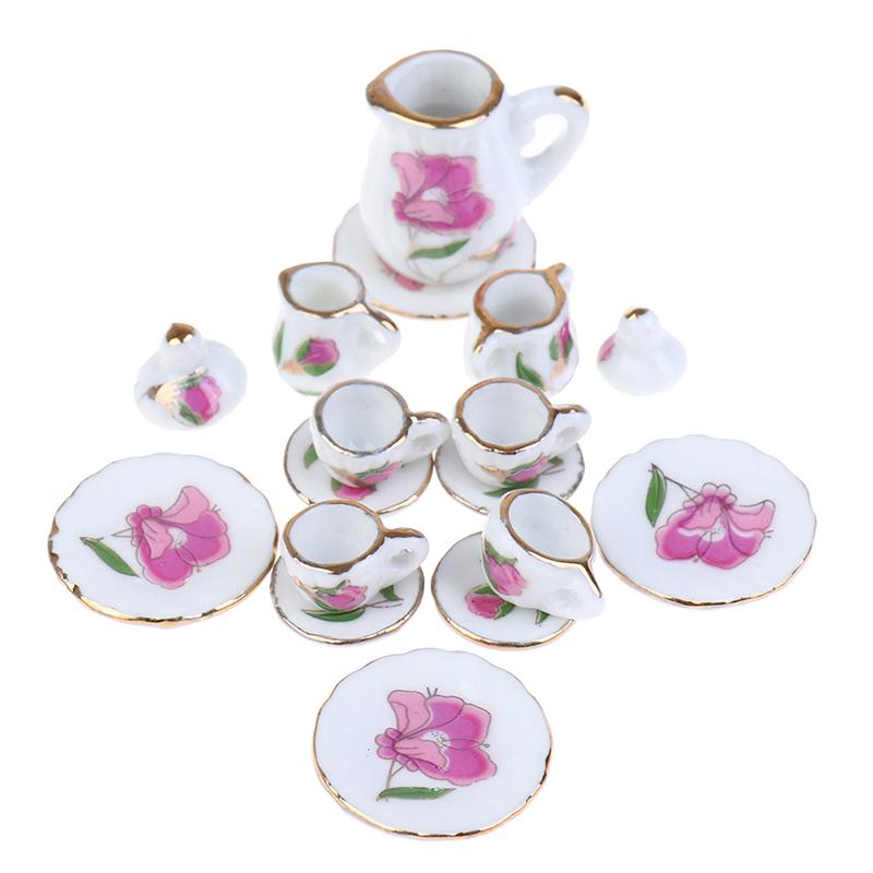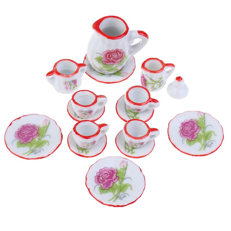15 шт./комплект 1:12 миниатюрных столовых приборов для кукольного домика фарфоровая керамическая чайная чашка тарелка