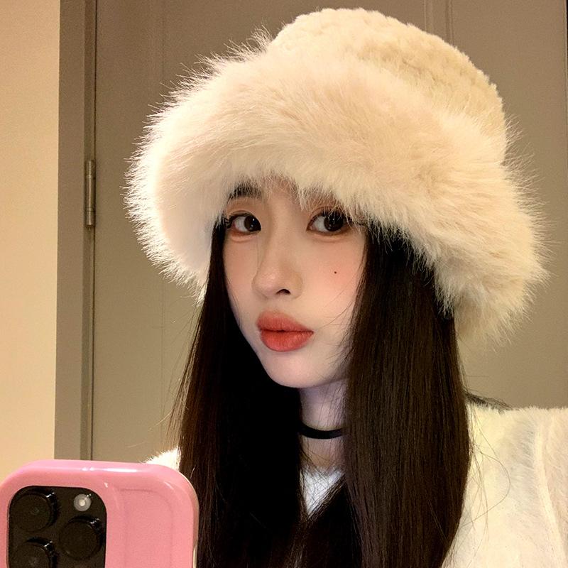 Зимняя имитация меха Сето шляпа рыбака для женщин теплая мягкая и восковая плюшевая шляпа-ведро корейский стиль подчеркивающая маленькое лицо ветрозащитная шляпа