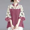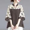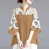 ZANZEA Женская повседневная блузка с V-образным вырезом, свободного кроя, с принтом и вставками, рукав 3/4