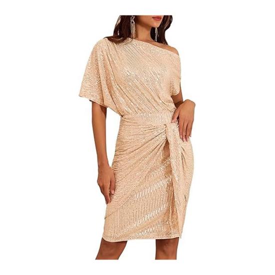 Подчеркните свой стиль этим женским платьем, изготовленным из мягкой и удобной ткани.. Дизайн на одно плечо с квадратным вырезом отличается свободным кроем с деталями из плиссировки, создающими стройнящий эффект.. Простой, но модный образ дополнен отделкой пайетками и сексуальным дизайном, излучающим элегантность и моду..