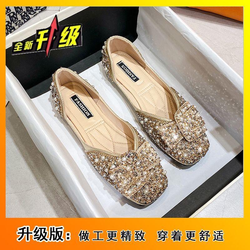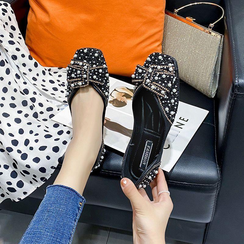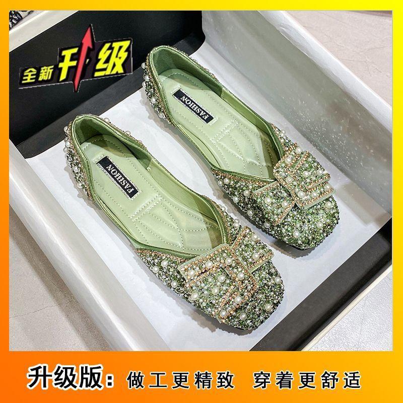 Женская обувь с жемчужными стразами, одинарная обувь, вечерняя обувь, балетки, обувь Doudou, корейская версия, с мелким вырезом, одинарная обувь на один шаг, женская 2025 новинка