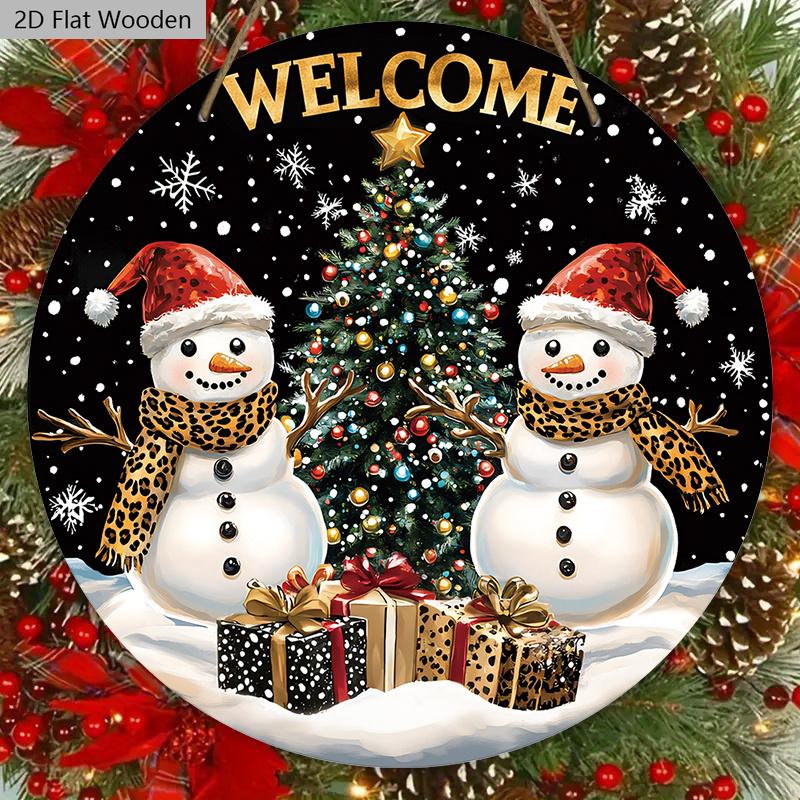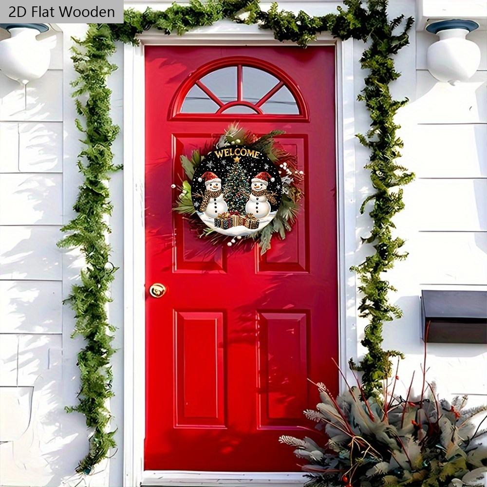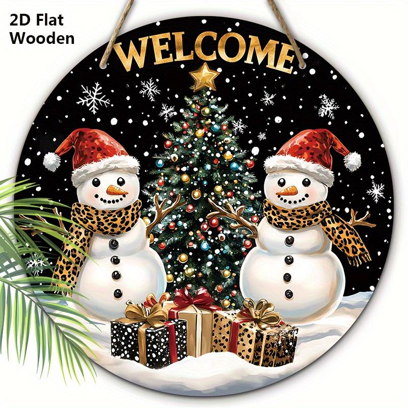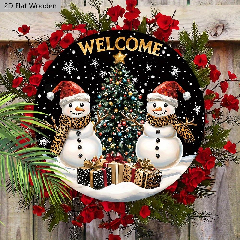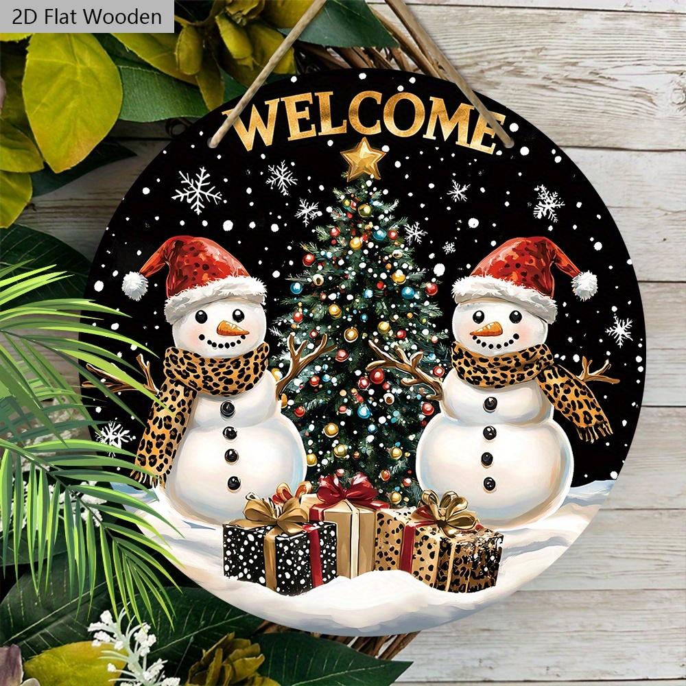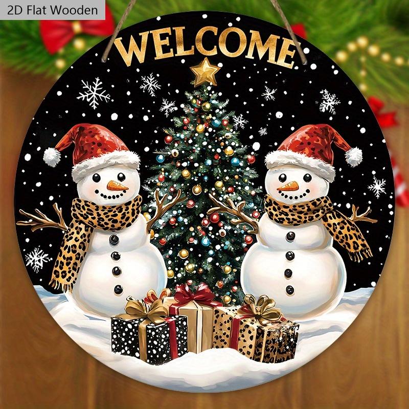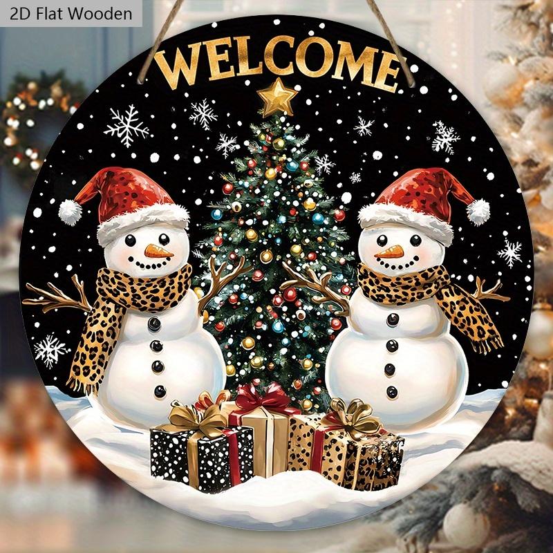 Деревянная приветственная табличка в деревенском стиле на Рождество с узором снеговика - Круглая табличка Navidad для входной двери, настенный декор - Идеальное рождественское украшение
