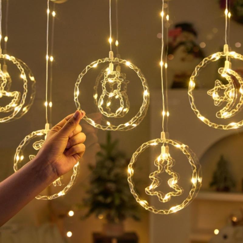 Светодиодные Рождественские Декоративные Огни Подвесные Огни Оконное Праздничное Украшение Атмосфера Пульт Дистанционного Управления Батарейный Блок Круглые Гирлянды
