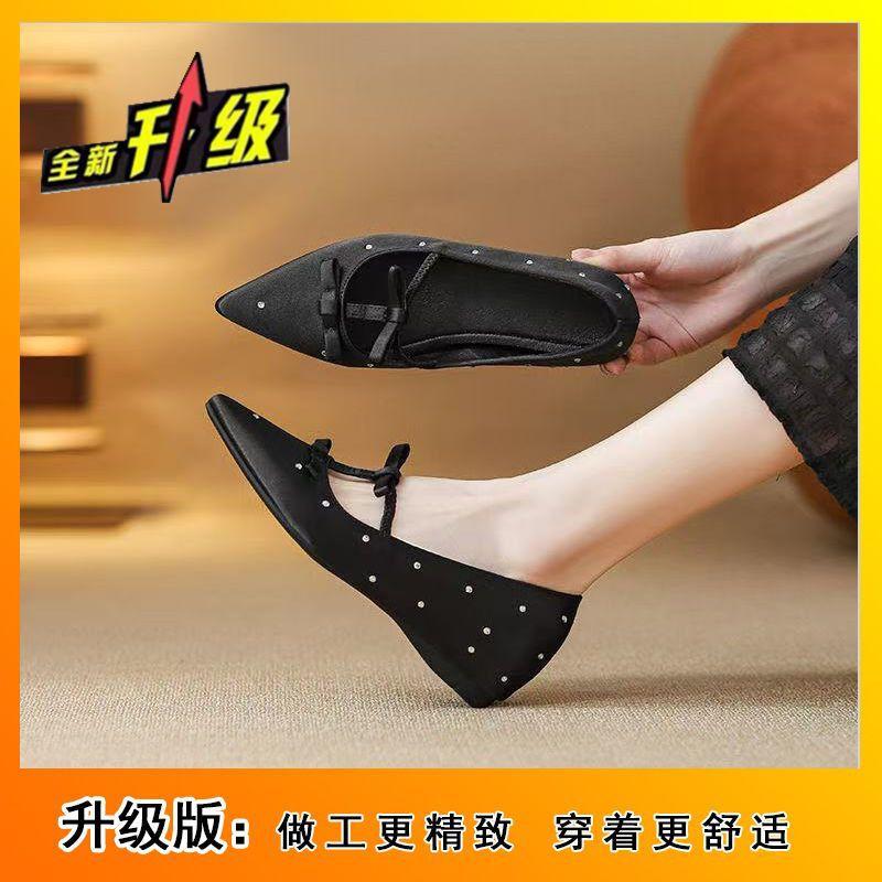 Универсальные туфли-лодочки с неглубоким вырезом в стиле феи с бантом, женские, осень 2025, на высокой платформе, с острым носком, со стразами, из мягкой кожи, на толстом каблуке, одинарные туфли