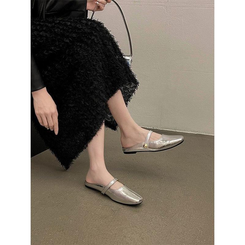 Ленивые люди педали половина скобы одиночные туфли женская обувь летняя одежда 2025 года с плоским дном французские нежные полутапочки с сумкой