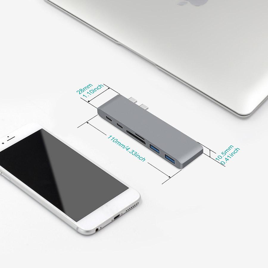 Кабель-адаптер 6 в 1 с двумя разъемами Type-C на HUB TF SD USB 3.0 для Macbook Pro