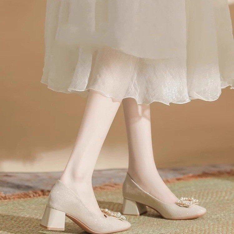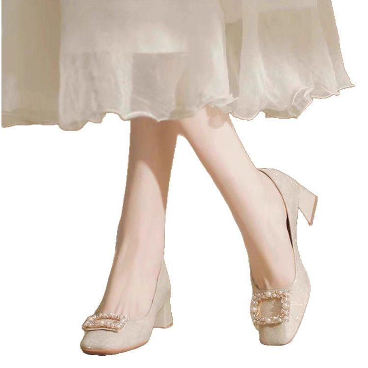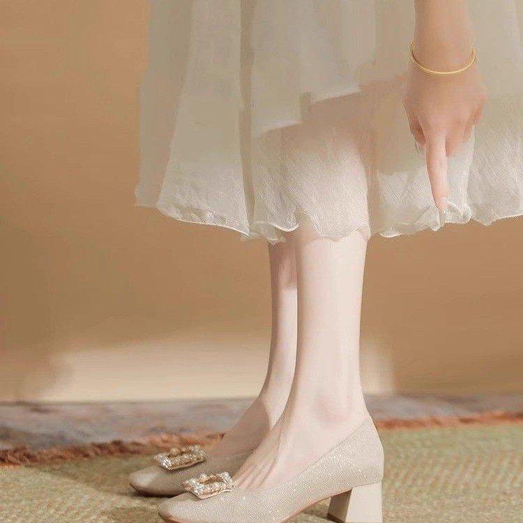Туфли-лодочки на толстом каблуке со стразами, женские, весна 2025, темпераментные, универсальные, под юбку, на среднем каблуке, с квадратным носком, на высоком каблуке, свадебные туфли