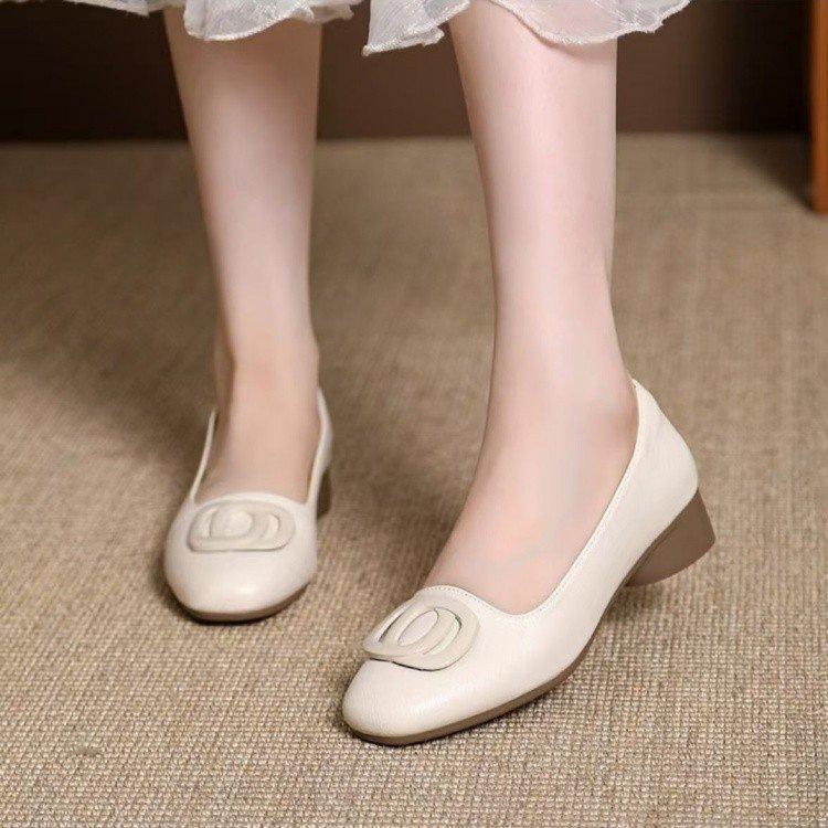 Женская обувь популярная мягкая кожа квадратный носок туфли-лодочки 2025 осень новая мелкая посадка универсальные для мамы высокий каблук мягкая подошва кожаная обувь женская