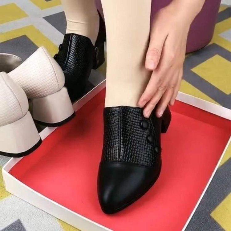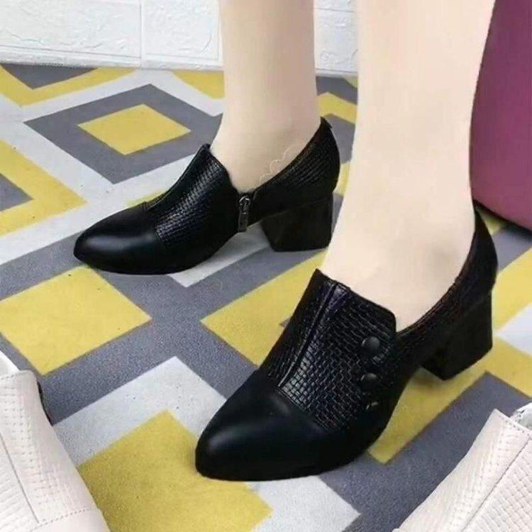 2025 туфли-лодочки с глубоким вырезом женские на среднем каблуке маленькие кожаные туфли на толстом каблуке женские туфли осень мягкая кожа туфли для мамы универсальные популярные sing
