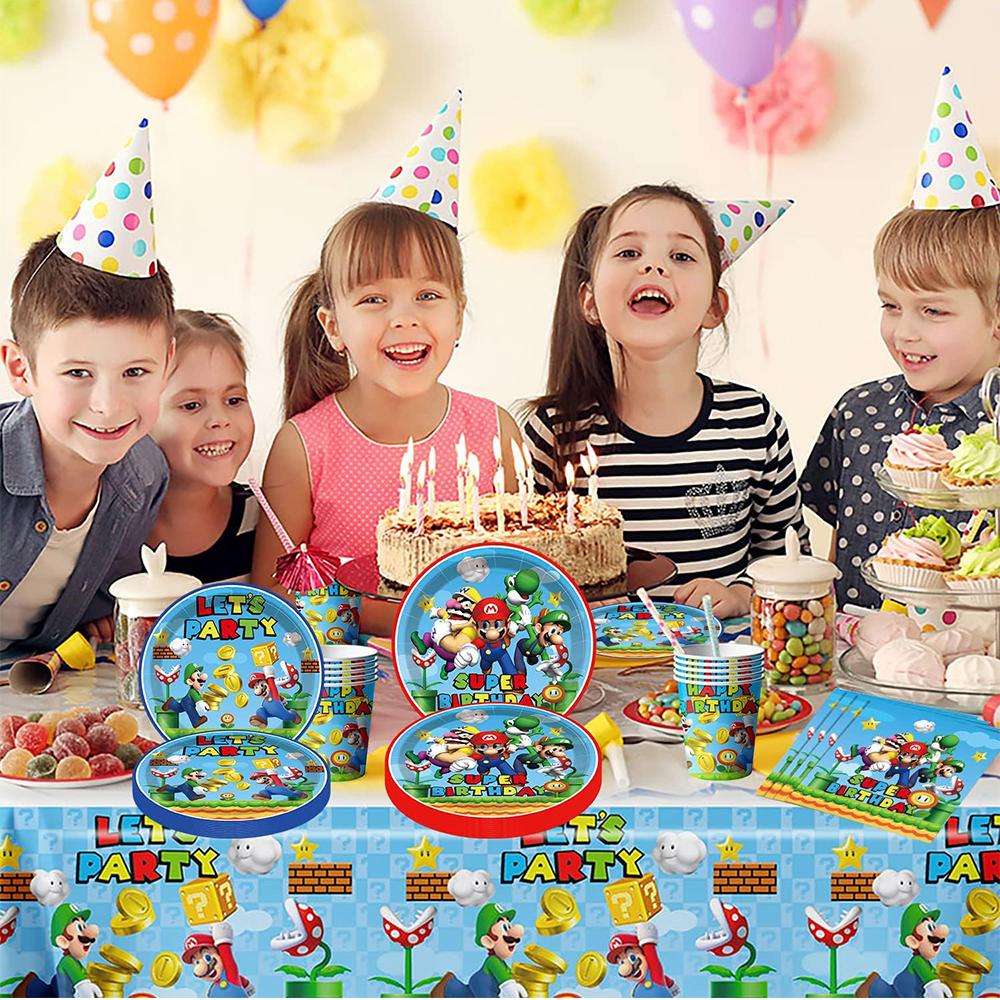 10 тарелок 7 дюймов, 10 тарелок 9 дюймов, 20 салфеток, 10 бумажных стаканчиков, 1 скатерть, идеально для вечеринок в стиле Марио.
