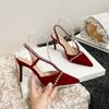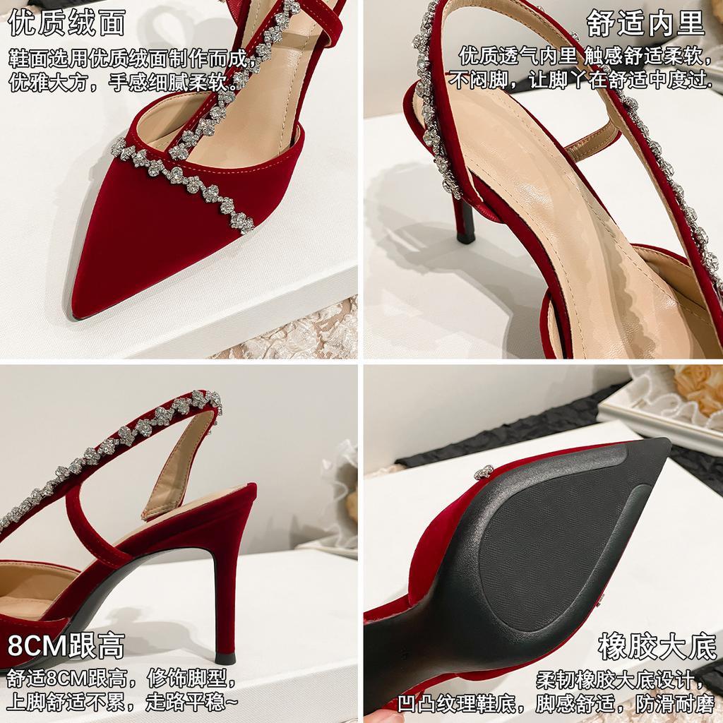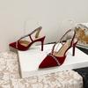 L-101 2025 Босоножки со стразами Баотоу Женские Сексуальные Ремешок на одно слово Шпилька Сказочный стиль Высокий каблук Красные Свадебные туфли