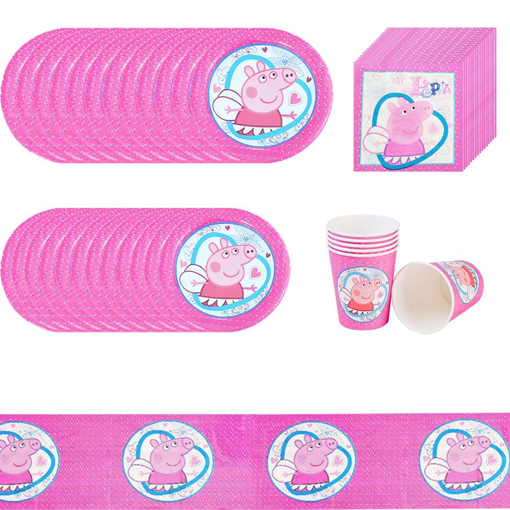 57 шт. Товары для вечеринки Свинка Пеппа включают тарелки, стаканы, салфетки, скатерть