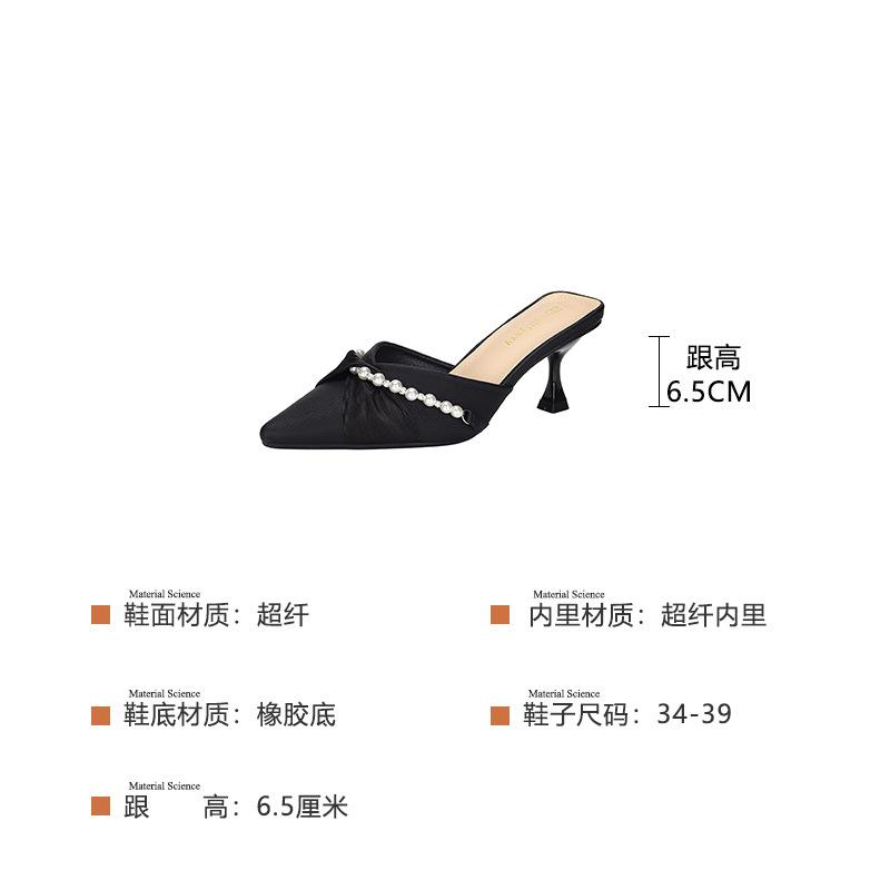 2025 Новые супер огненные универсальные туфли на все времена года, тонкие тапочки на среднем каблуке, остроносые босоножки Baotou со стразами 912-D86