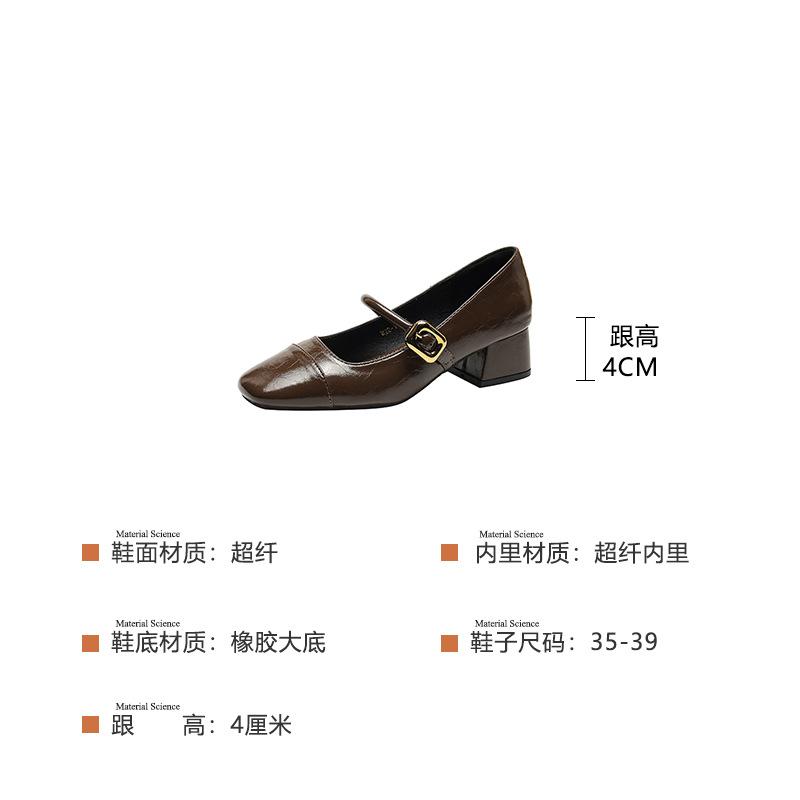 Весенние виноградные материнские туфли на толстом каблуке женские туфли Мэри Джейн на среднем каблуке женские туфли с неглубоким горлом квадратная головка высокие каблуки маленькие кожаные туфли
